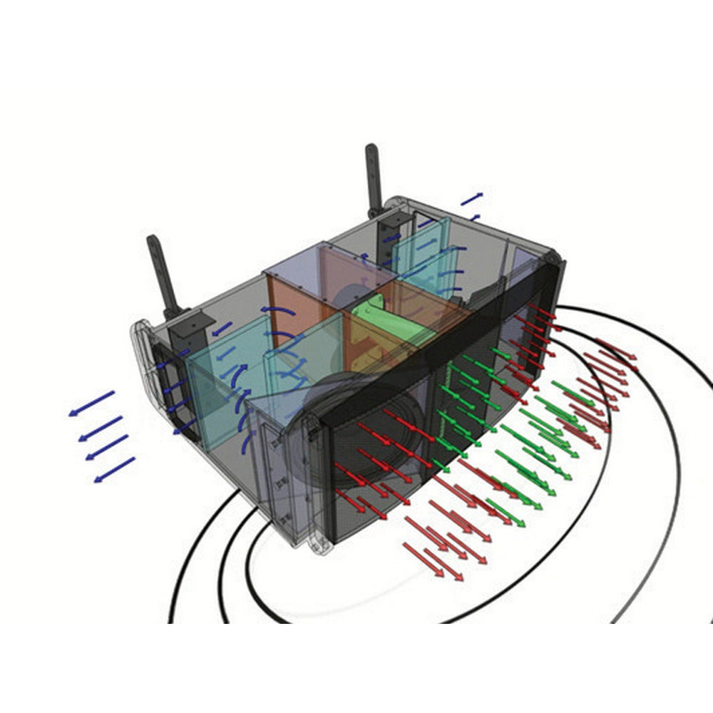 The AX2010A offers a simple but innovative design in line array elements. The simple concept of the WTW symmetrical design is implemented in an effective way in order to minimize the effects of potential beaming phenomena around the crossover frequency. In order to minimize these effects, many different details have been carefully engineered, the first of them being the choice of the HF driver units. The special light-weight diaphragm used in these drivers features a very low mechanical resonance, thus allowing a relatively low crossover frequency point that is placed in the 900Hz range. Moreover, the orientation of the two woofers allows to minimize the interference effect between them, while the use of a mechanical-acoustic polyurethane filter represents a further help in minimizing the midrange beaming. The crossover filter approach is based on a “Constant Power” technique. Thanks to a particular phase combination between the two ways around the crossover frequency, this approach is able to provide a very stable horizontal coverage and a very stable off-axys sound image, also minimizing unwanted effects around the crossover frequency. The further application of phase linearization techniques, combined to constant power crossover, yield a linear phase response and a coherent time response. This allows for a natural perception of acoustic instruments and voices and for an improved depth of the sound image.