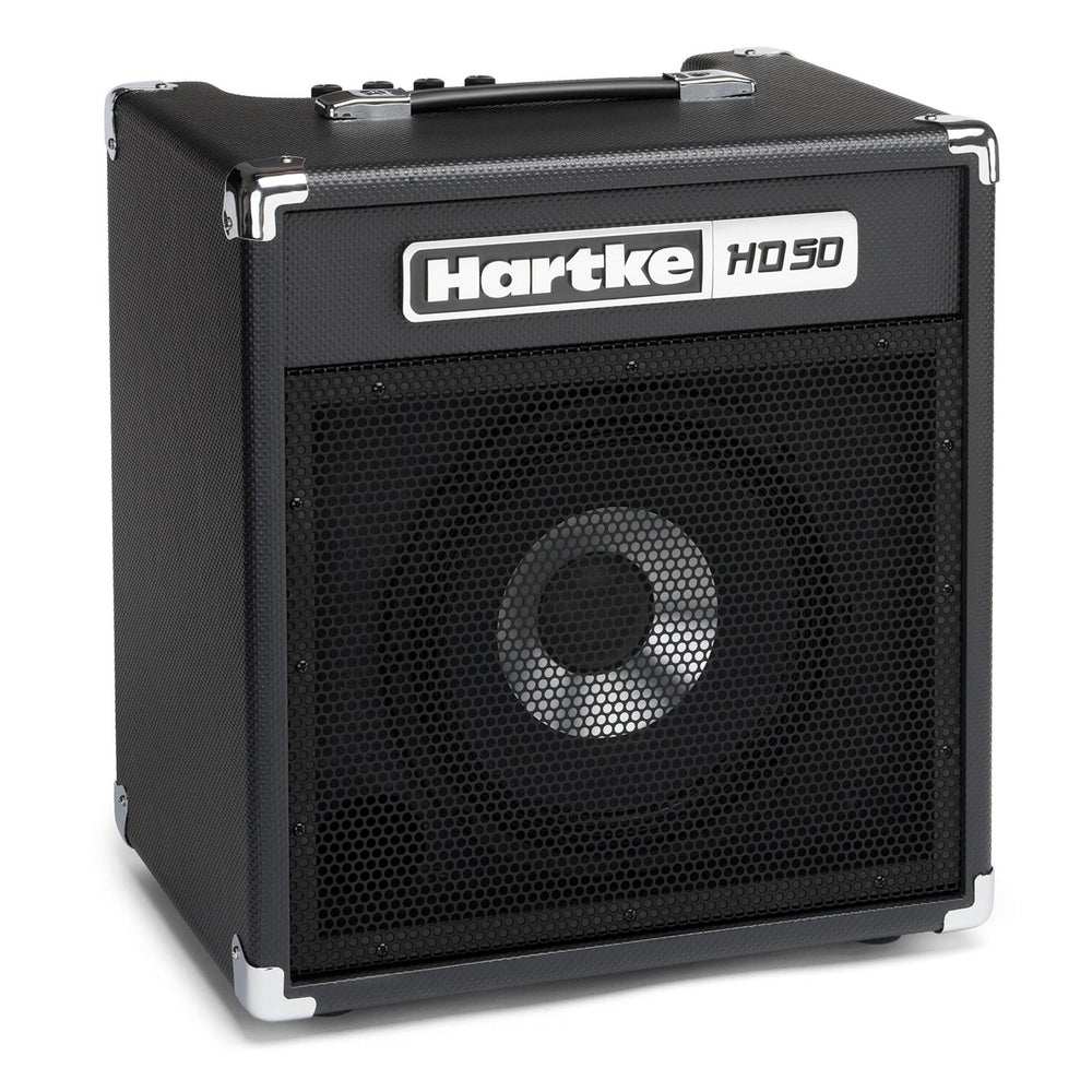 The HD50 (50 watts, 10ā driver) employs Hartkeās patented HyDrive Speaker Technology that offers a carefully crafted hybrid (half paper, half aluminum) cone bass speaker. By combining the warmth and roundness of paper with the punch and attack of aluminum, the HyDrive design produces serious tone that is ideal for bass players of all genres and styles.
