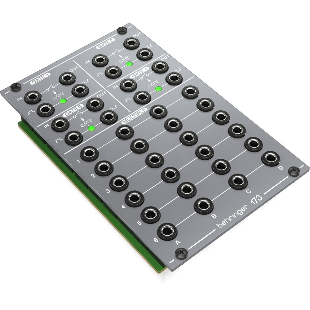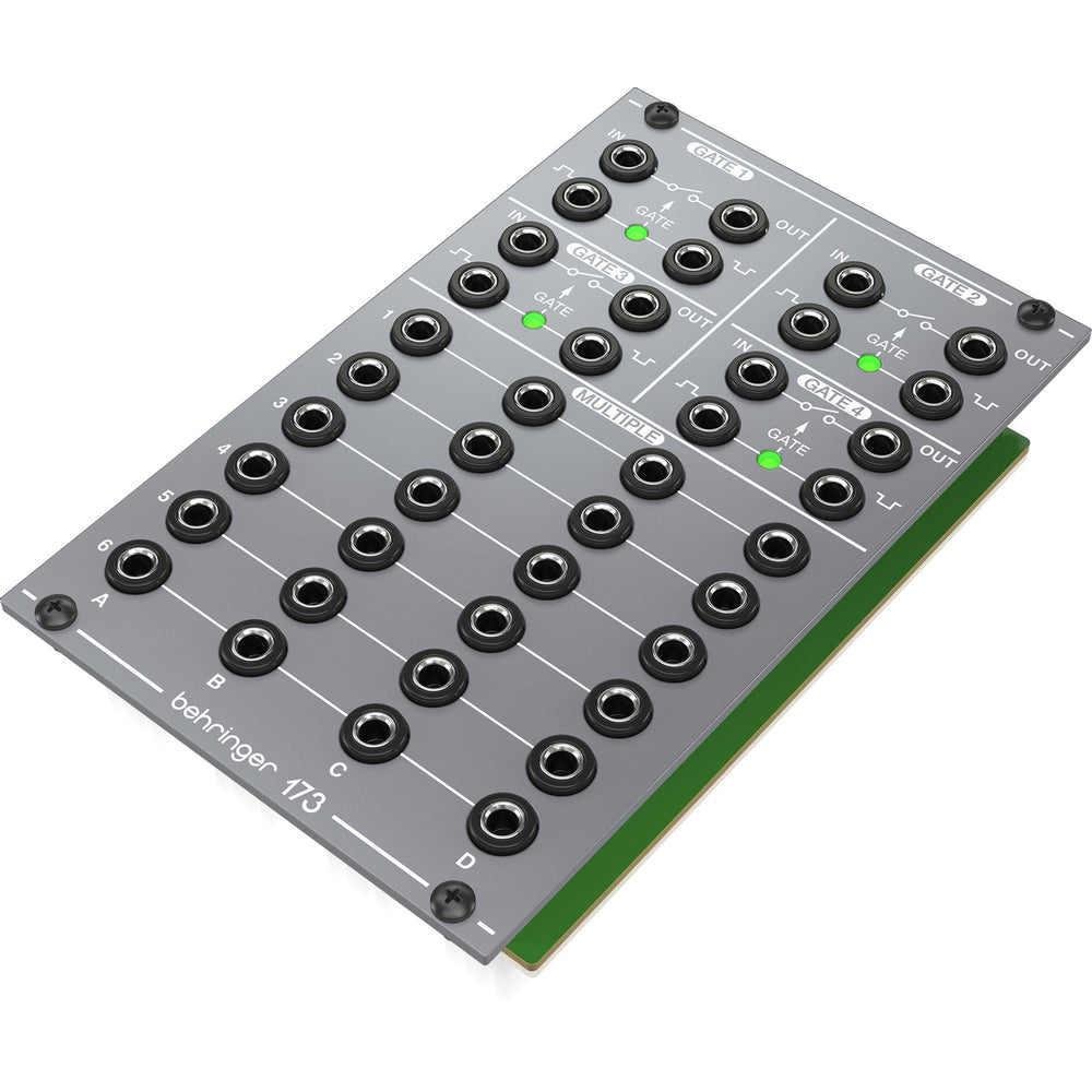 Behringer 173 Quad Gate Multiples is an analog Eurorack utility module designed for modular synthesis systems and studio environments. It enables signal switching and signal distribution for musicians and sound designers, supporting control and routing workflows within modular systems. This makes it ideal for setups where reliable gate control and signal duplication are critical.