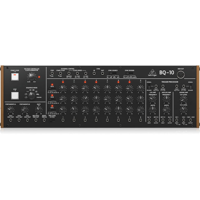 Behringer BQ-10 is an analog control voltage sequencer designed for modular synthesizer systems and Eurorack environments. It enables step-based voltage sequencing for musicians and sound designers working with modular synthesis workflows. This makes it ideal for modular setups where precise timing control and voltage modulation are critical.