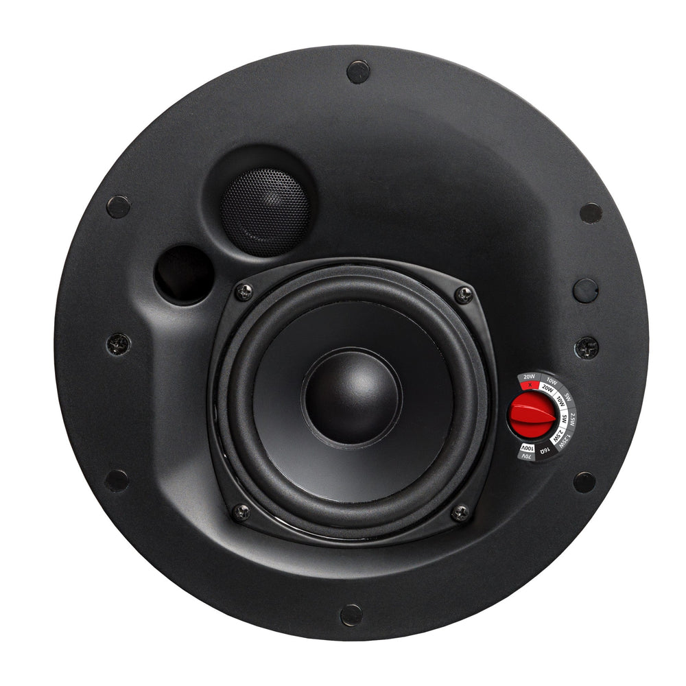Designed with the installer in mind, they can be blind-mounted from below the ceiling, and feature a magnetic grille for easy toolless installation and removal that can also be painted to match the room decor. Additionally, the tap switch is located on the face of the loudspeaker, so adjustments can be made without requiring ceiling access.