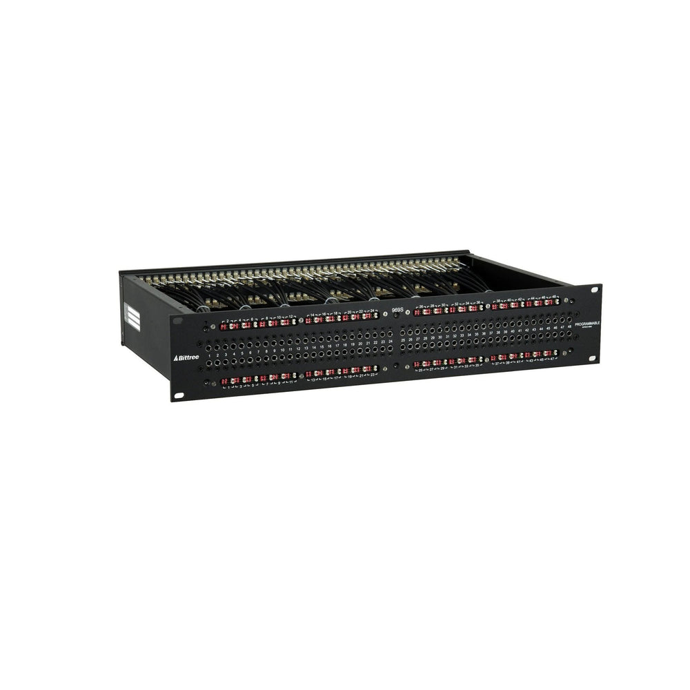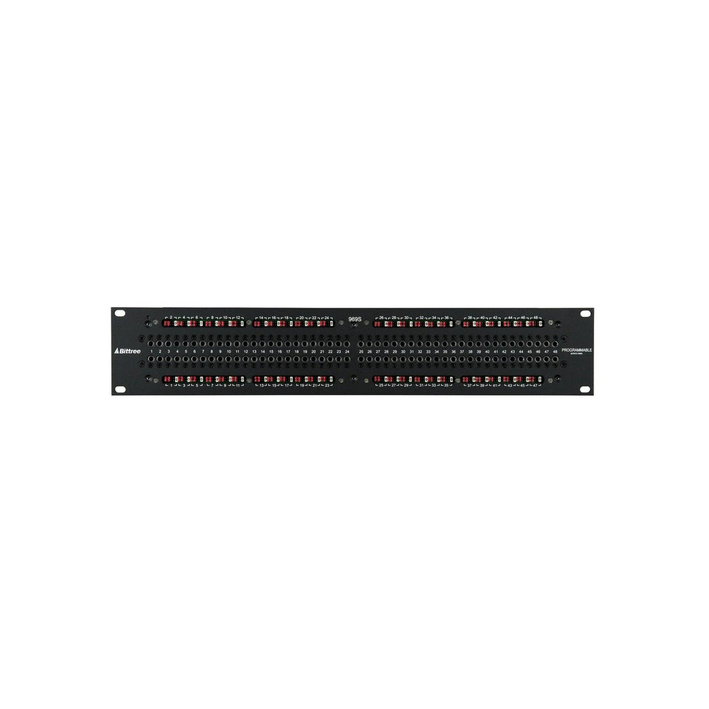 M2OU 969-S Series 2x48 2RU Full-Normal Patchbay 12-inch version. Our 969-S Series of Programmable audio patchbays allow you to program switched grounds - in addition to bussed, isolated and looped grounds as with the original 969 series.