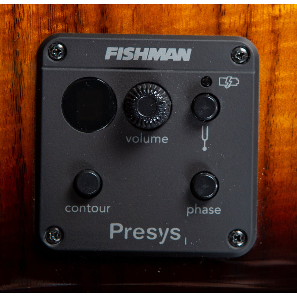 Equipped with Fishman Presys I electronics, this acoustic-electric is stage-ready with dependable performance and onboard tone-shaping. Its edgeburst gloss finish highlights the exotic koa grain, complemented by tortoise binding and copper hardware. Comfortable, responsive, and sustainably crafted, the Pursuit Exotic S Concert CE is ideal for fingerstyle, strumming, songwriting, and performance.
