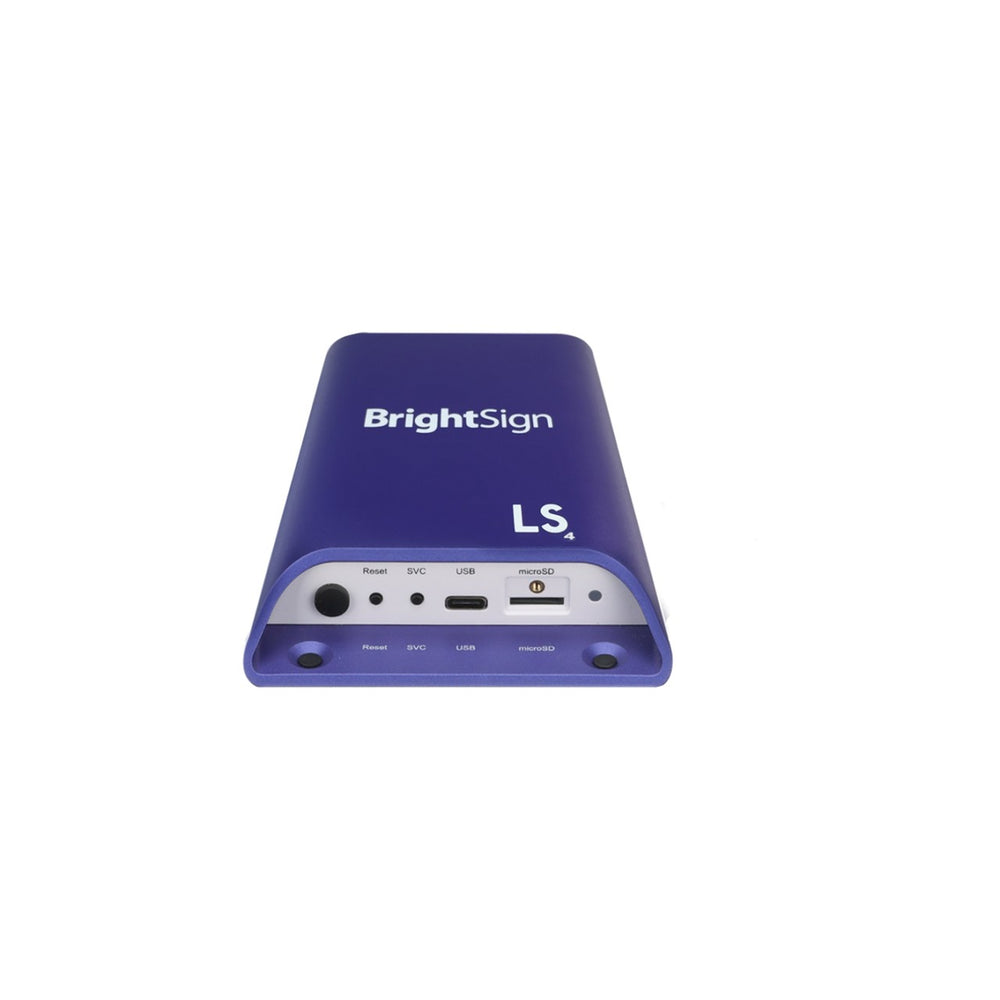 The small form, commercial-grade BrightSign LS424 is fully featured to run circles around the competition while offering easy port access and power efficiency. Network connected and featuring H.265 1080p60 video playback, entry-level HTML5 support and USB interactivity, this model is perfect for simple streaming applications and large deployments of