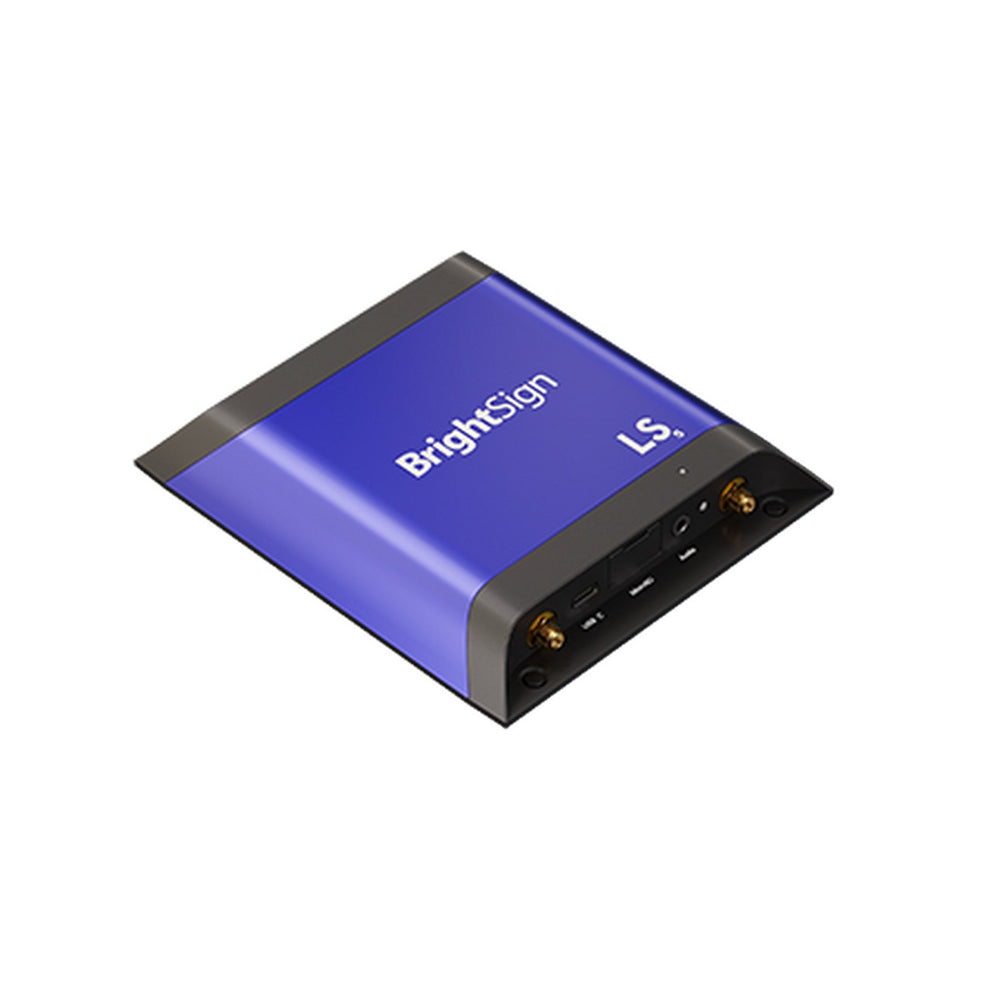 BrightSign LS5 offers both an HD and 4K model that effortlessly display looping video, HTML and graphics while also supporting digital audio and USB-C interactive peripherals. With a locking power cord, ethernet, and an optional dual antenna Wi-Fi module, signage is always connected to a free Control Cloud and your preferred CMS. The LS5 is small and thin so it fits just about anywhere and runs BrightSign OS to maximize security, reliability, and longevity. The LS5 is a valuable, cost-effective option for a broad range of standard signage experiences.