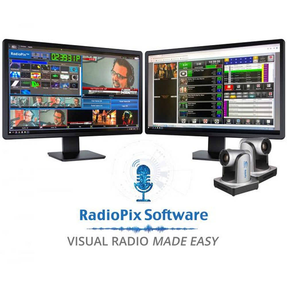 RadioPix systems come complete with everything your station needs to start creating dynamic visual radio content. Each system includes behavioral intelligence to automatically switch the included robotic cameras to whoever is talking, and automatically insert titles, graphics, and ads. Simple to install and compatible with radio automation software, Axia, AEQ and Wheatstone consoles, you can start streaming great pix of your radio show in minutes.