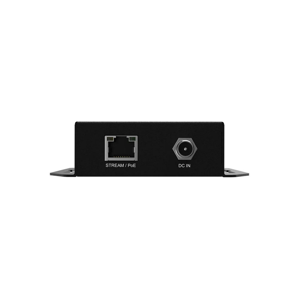 Designed for efficient installation, the unit supports both PoE and 12V DC power options, reducing cabling complexity in rack, desktop, or remote installations. Compatibility with advanced formats such as H.264, H.265, AVC, and optional Dante AV-H or NDI HX licensing makes this decoder a versatile solution for scalable AV systems.