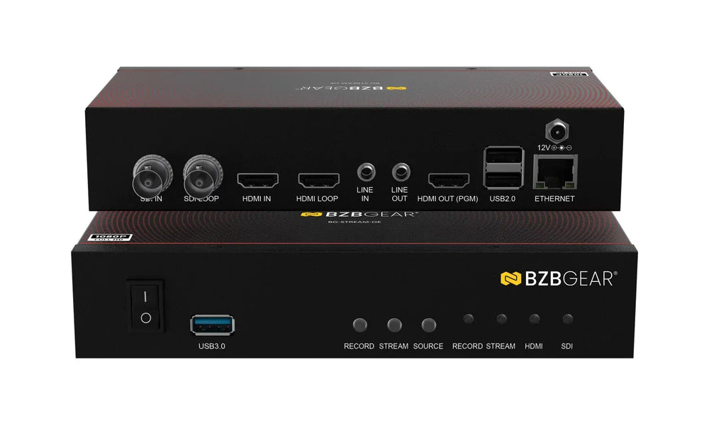 The BZBGEAR BG-STREAM-DE is a professional-grade Full HD 1080p60 encoder and decoder designed for reliable IP video streaming, recording, and signal conversion in broadcast, live production, AV-over-IP, and enterprise environments. Supporting both SDI and HDMI video inputs with embedded and analog audio, this versatile unit delivers high-quality video distribution over standard IP networks with advanced compression and protocol support.