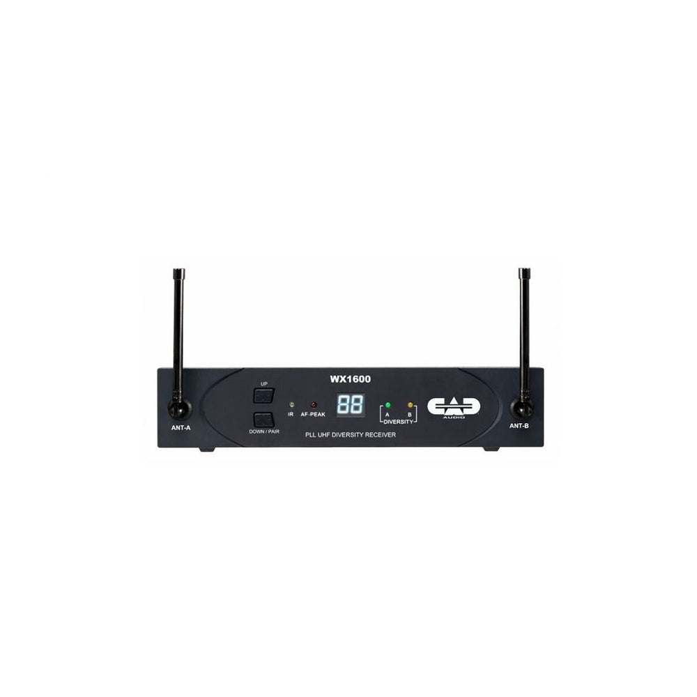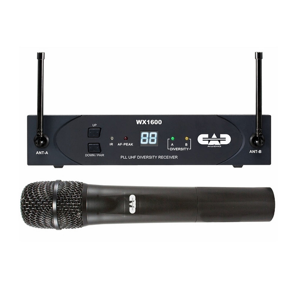 The WX1600 UHF 100-Channel Frequency Agile Handheld Wireless System from CAD Audio is for capturing audio. It is used in various venues for vocal and speech applications such as for singers, public speakers, stage and theater performances and more. It features a frequency response of 40Hz to 15kHz and a dynamic range of 109dB. This handheld system features 100-channel UHF frequency agile reception and offers connectivity with a minimal of multipath interference.