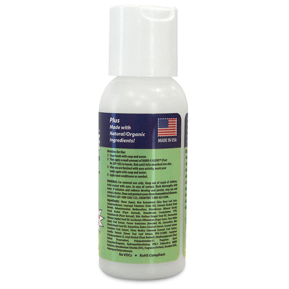 HAND-E-GLOVE is a unique, easy-to-apply lotion designed to create a thin, Invisible Glove around your hand. Made with natural, organic ingredients, HAND-E-GLOVE is ideal for use in environments that would normally require gloves or cause stained hands. HAND-E-GLOVE takes the place of a traditional set of gloves and preserves your natural sense of touch while also being antistatic. Best of all, the small bottle will last you up to 200 treatments and go with you everywhere.