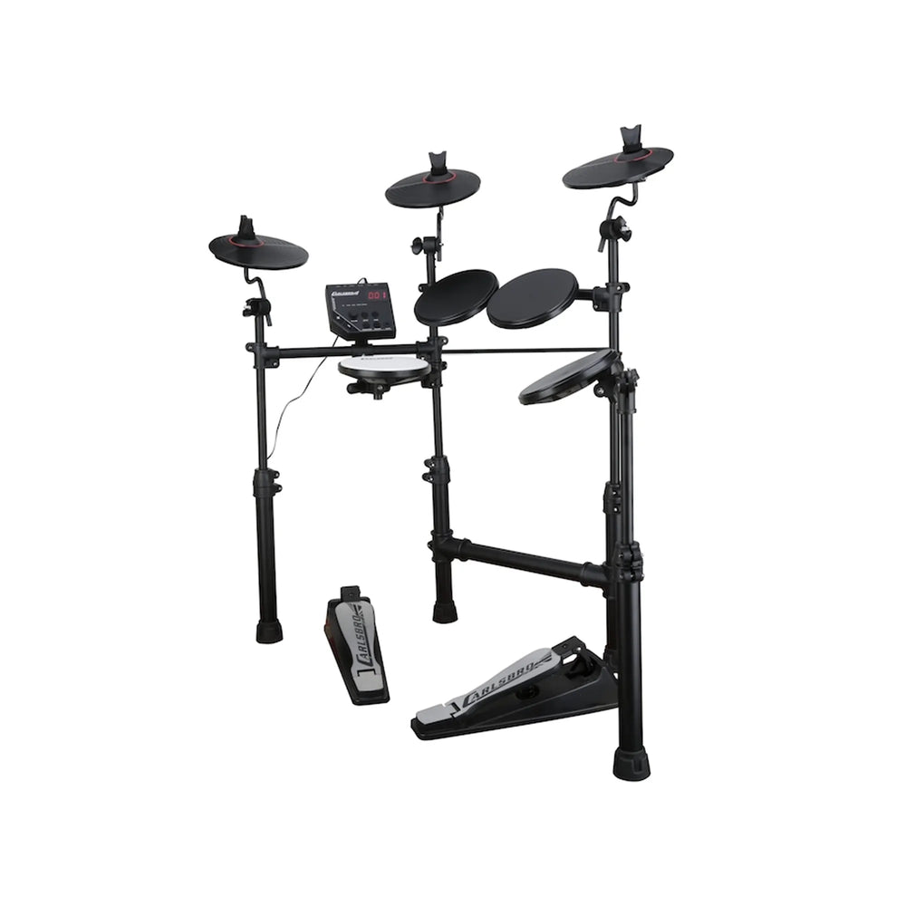 The Carlsbro CSD100 7-Piece Electronic drum kit comprises of the Commander 100 sound module, 4 x 7” drum pads, 3 x 8” cymbal pads, 2 x foot pedal controllers for bass drum and hi-hat simulation, a telescopic fully height adjustable frame and a pair of Carlsbro drumsticks.
