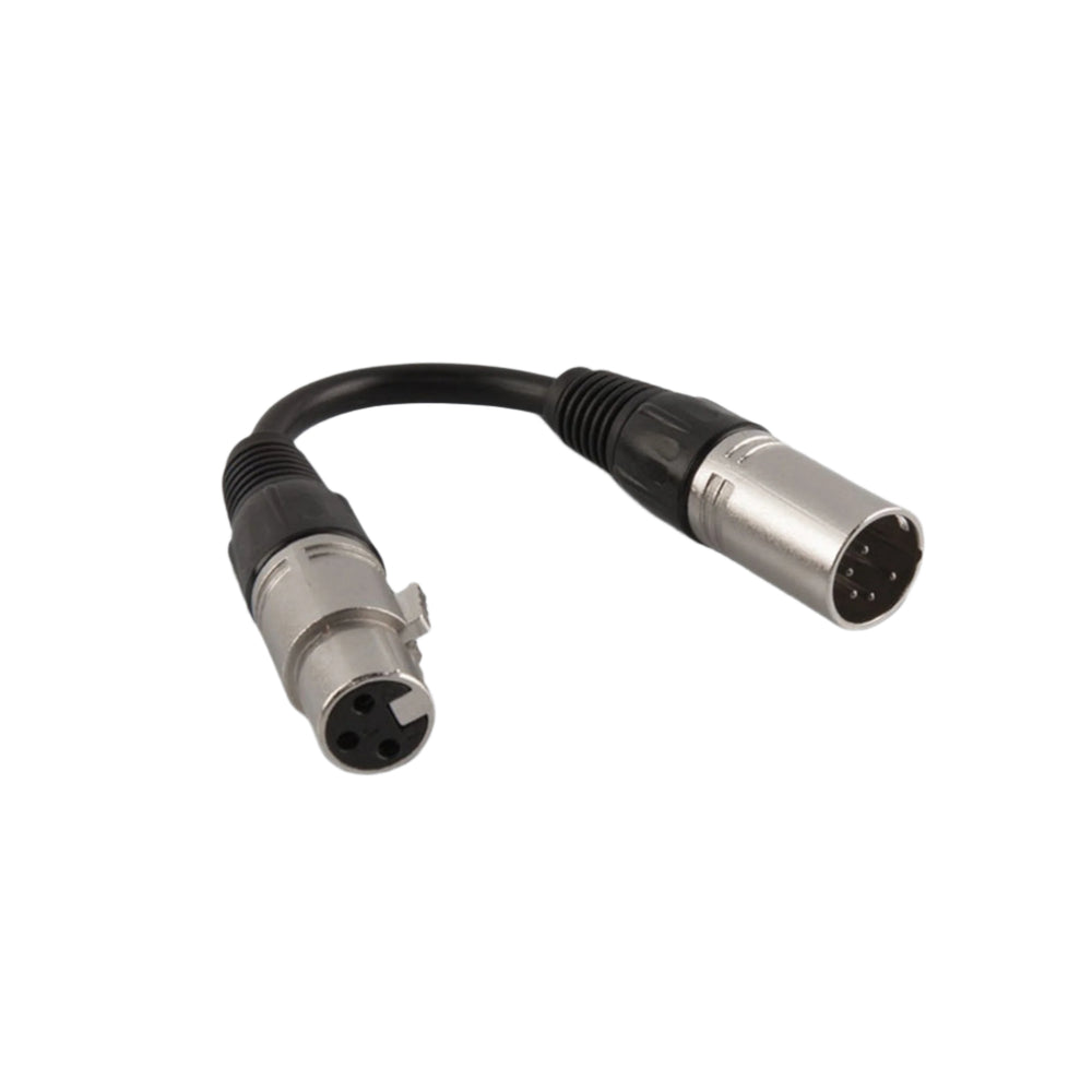 - 3-pin (F) to 5-pin (M) DMX turnaround