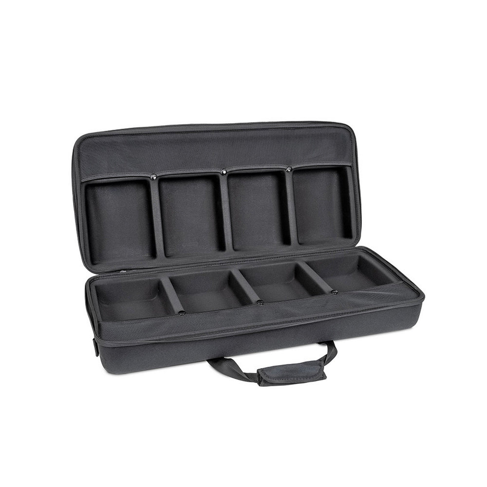 The included hardshell case is specifically designed to hold four AirPar HEX 4 uplights. Made with a lightweight molded EVA shell and water-resistant polyester exterior lining, this case offers both portability and protection. The custom molded interior includes four separate compartments for your lights, plus two buttoned mesh compartments for cables and accessories. Secured by a comfortable carrying handle or the included shoulder strap, this case lets you take your lights on-the-go with protection and style.