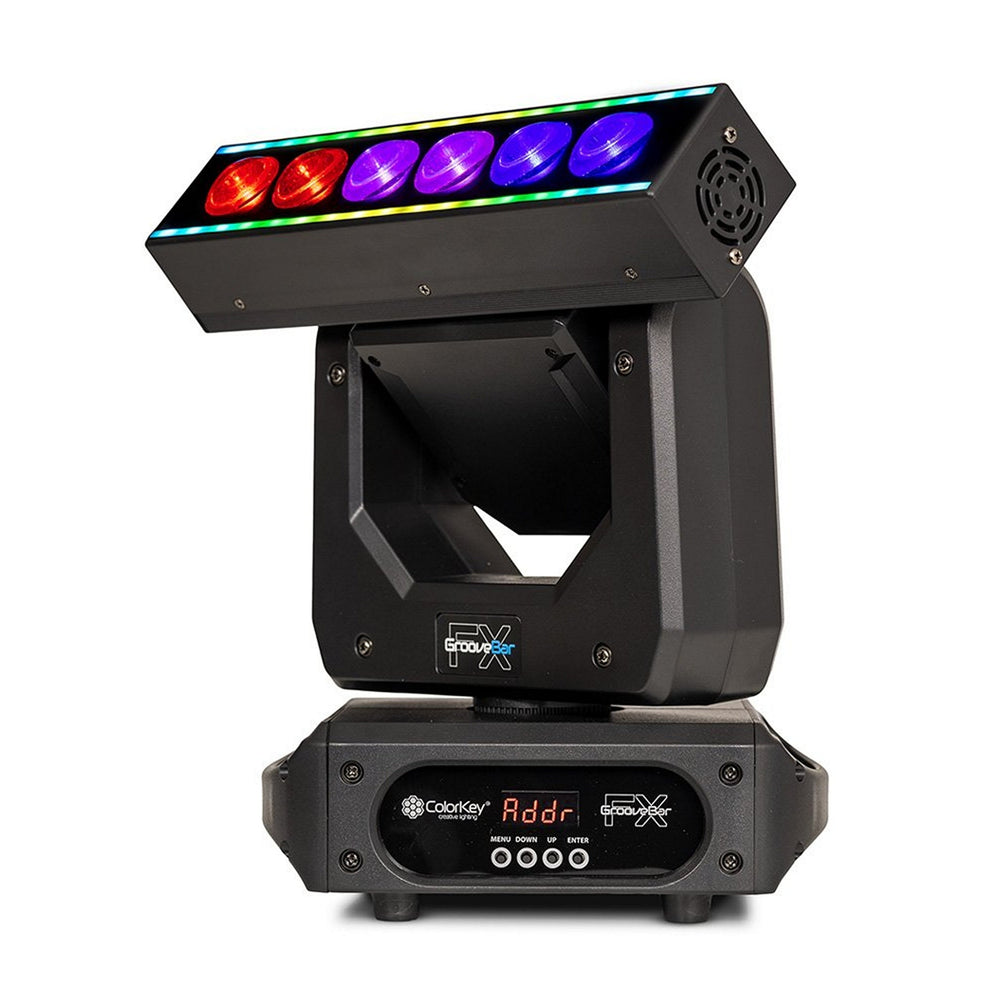 Compact yet performance-ready, the GrooveBar FX provides full DMX control, built-in macros, and sound-active modes for ultimate versatility. It’s engineered to suit a variety of applications, whether mounted on trusses, positioned on stage floors, or integrated into creative lighting rigs. With precise pan/tilt movement and a rugged design, it's a feature-rich solution for bold visual displays.
