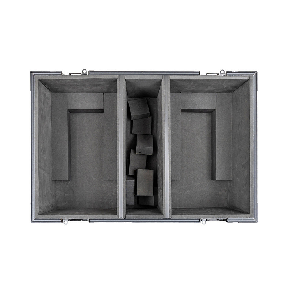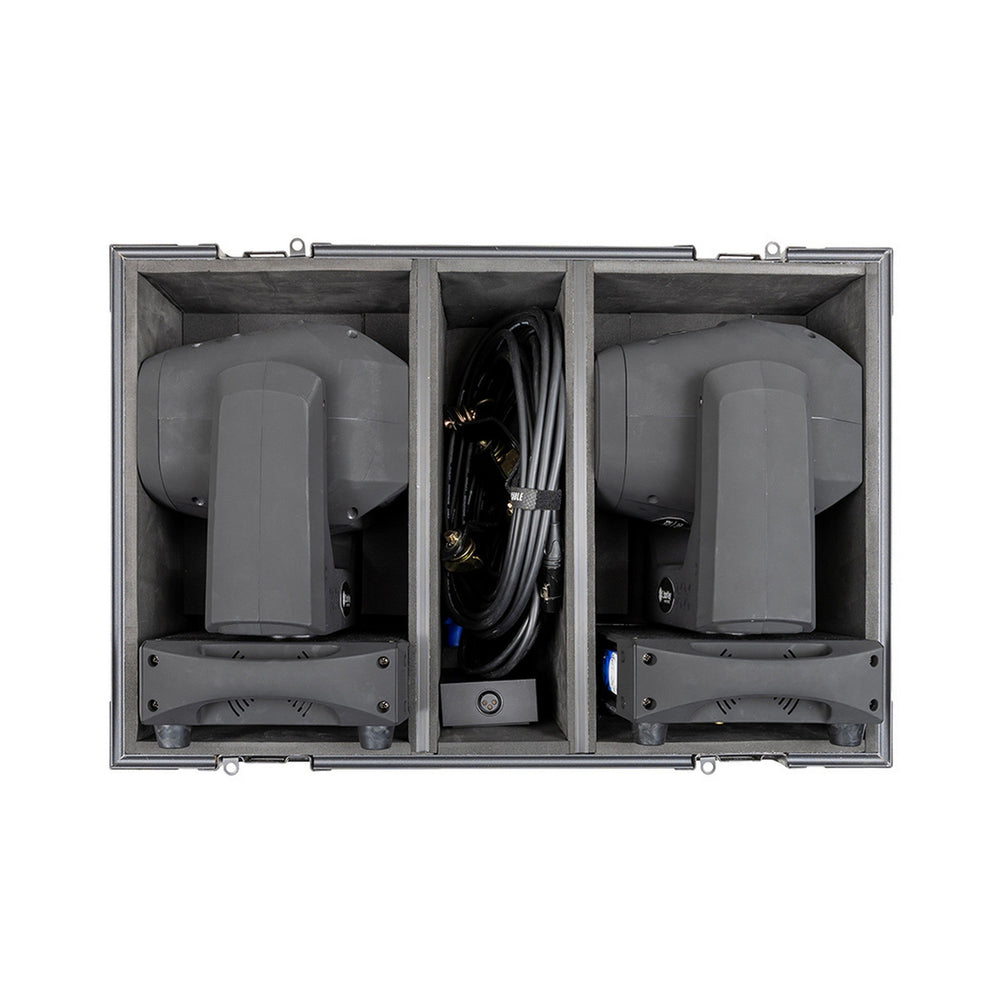 • Flight case designed for two fixtures with separate compartments and space for accessories