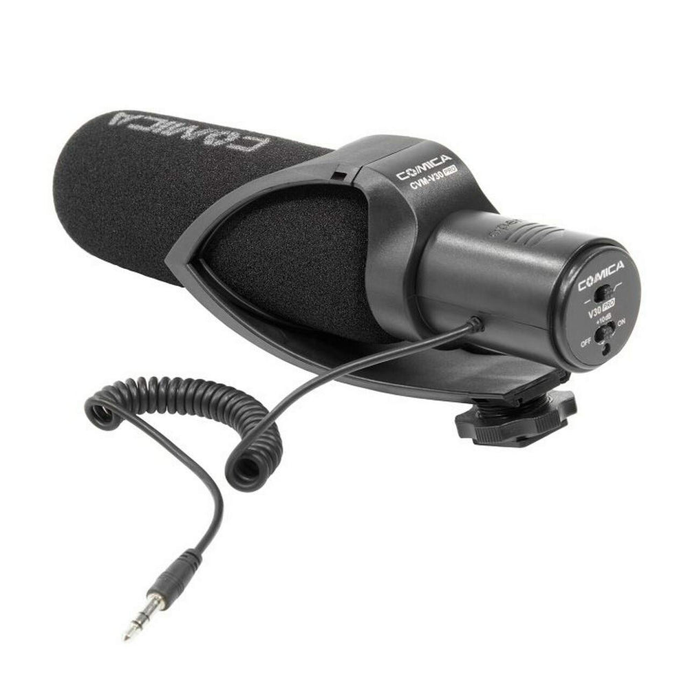 The CVM-V30-PRO-B is a professional shogun microphone for DSLRs and camcorders. It has a low-cut filter function and 10dB Sensitivity Adjustment. The low-cut mode works best when you are filming in a noisy environment and need to cut out the low-frequency noise.