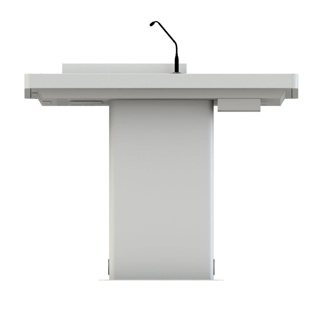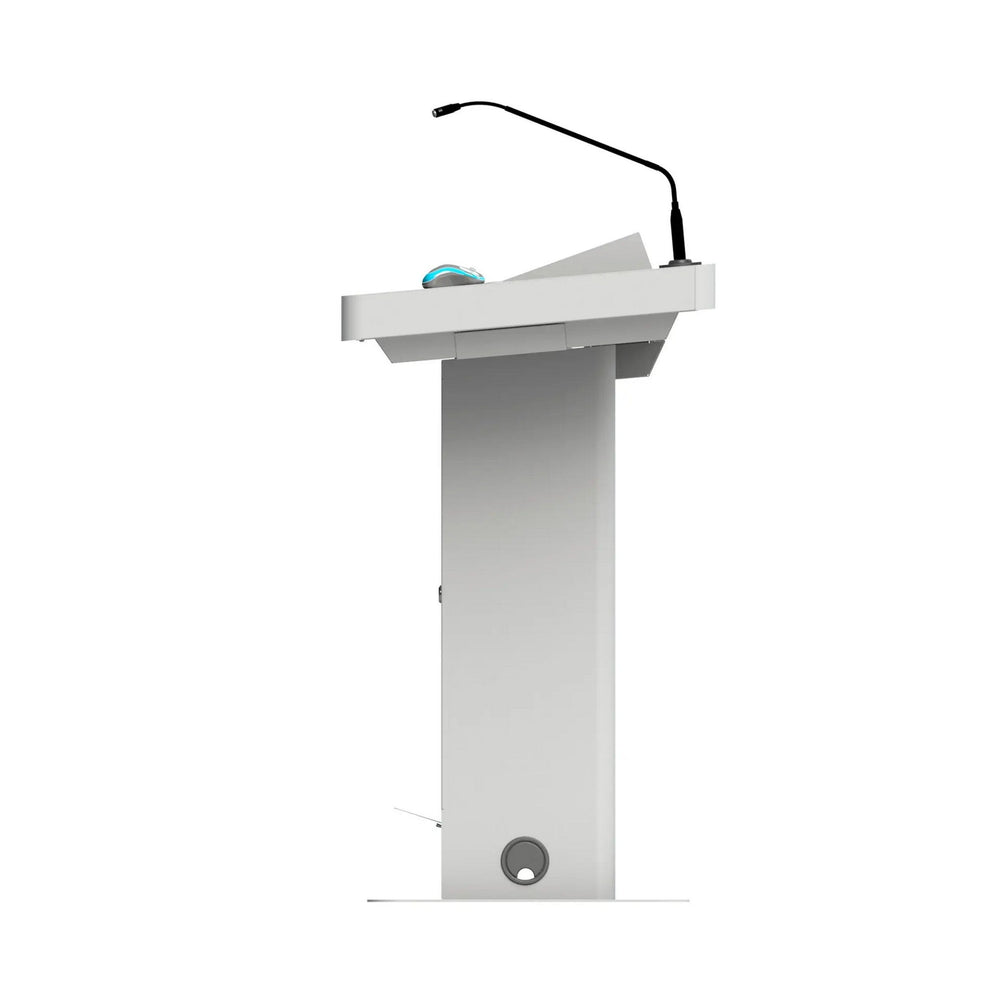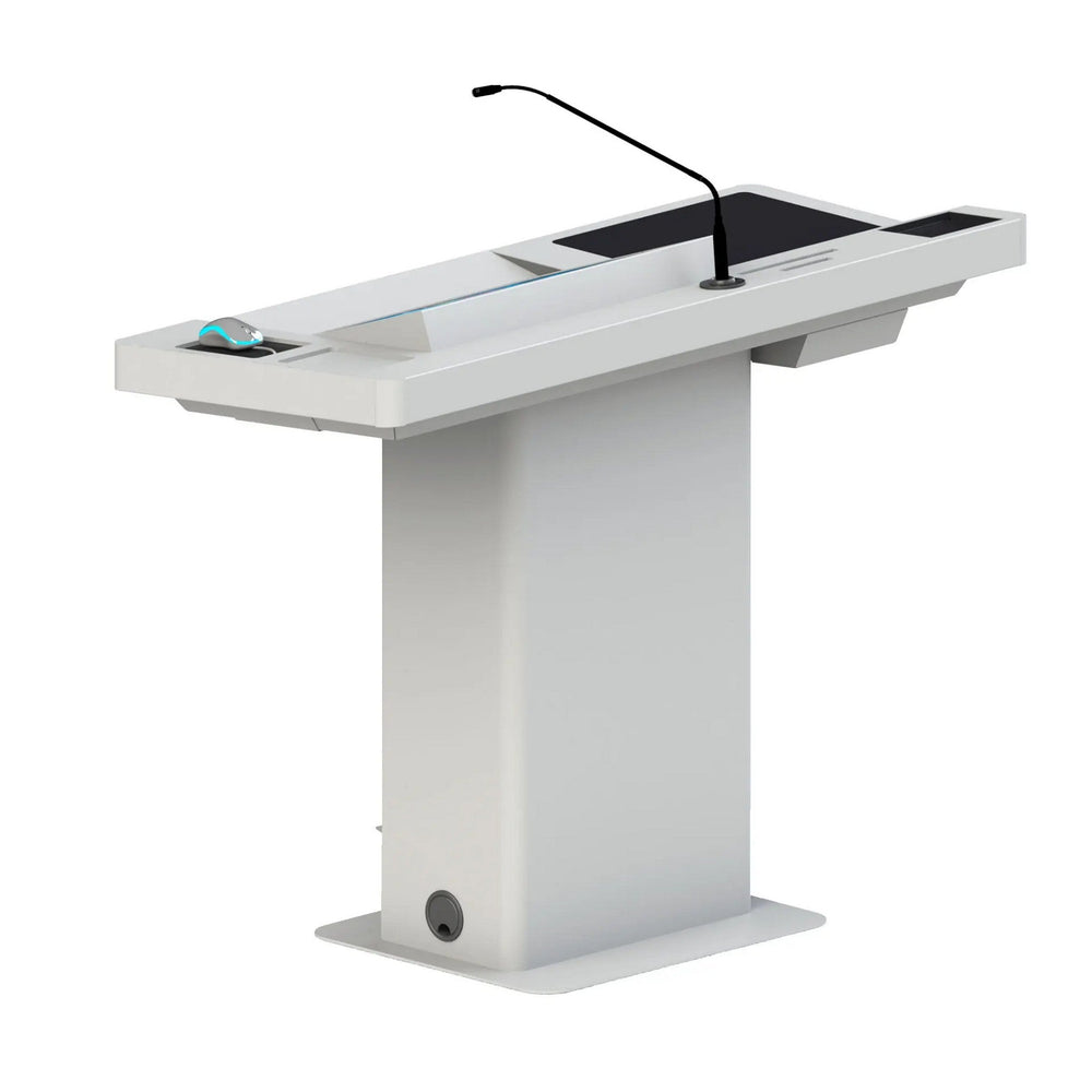 This podium not only delivers on visual technology but also offers powerful audio features with a high-quality Shure microphone designed for clear sound capture. The integrated computer system, featuring an Intel 4.10 GHz CPU and 4GB RAM, allows you to run software applications seamlessly, making it a complete all-in-one solution for your presentation needs.