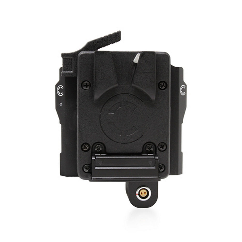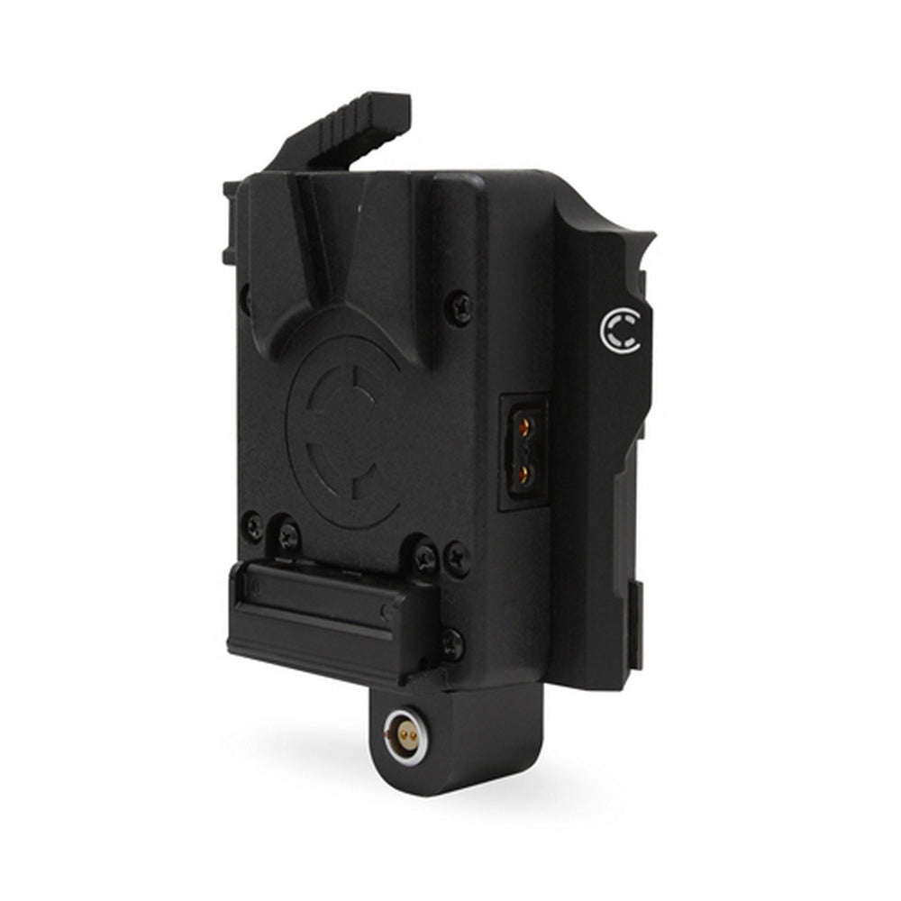 The CXV-KOMU is a BP to v-mount plate direct mount specifically designed for the RED KOMODO camera, allowing use of 14.4V V-Mount batteries and leaving the camera’s DC input available for AC power and battery hot swap. When used with “smart” batteries that pass SMBUS data like Core SWX batteries, the camera will read battery percentage and runtime, providing accurate remaining battery capacity info. It’s equipped with 3 DC output ports: P-Tap, USB, and 2pin Lemo. The plate also has a reinforced V-Mount locking mechanism, making it the most robust V-Mount plate on the market.