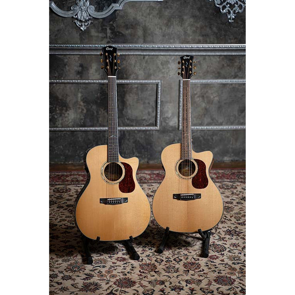 Cort's innovative ATV torrefaction process gives the Gold-OC6 Bocote the rich sound of a vintage instrument, even when it's new. The combination of a solid Sitka spruce top and solid Bocote back and sides delivers a beautifully balanced sound, with sparkling highs, warm mids, and deep bass. The comfortable OM cutaway body style offers effortless playability and a surprisingly big sound.