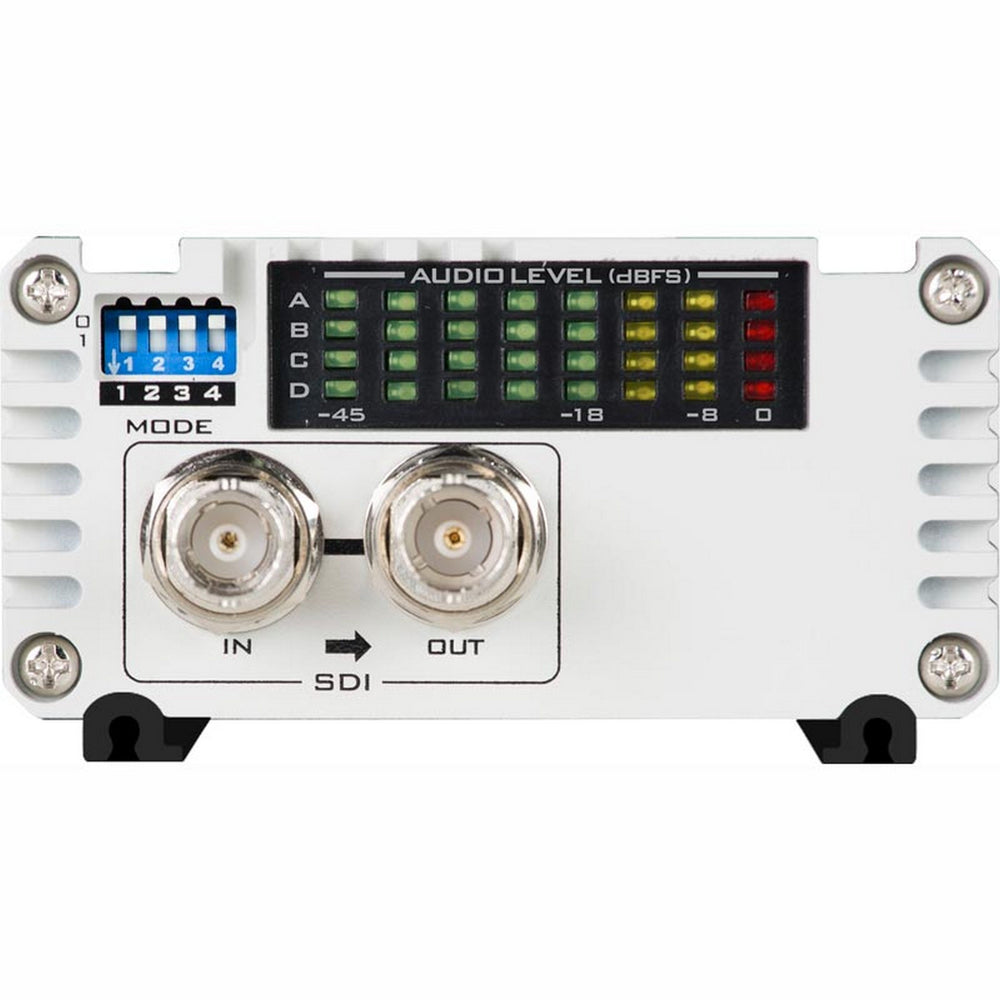 Allows users to de-embed 16 analogue audio signals (4 at a time) from SDI video signal.
