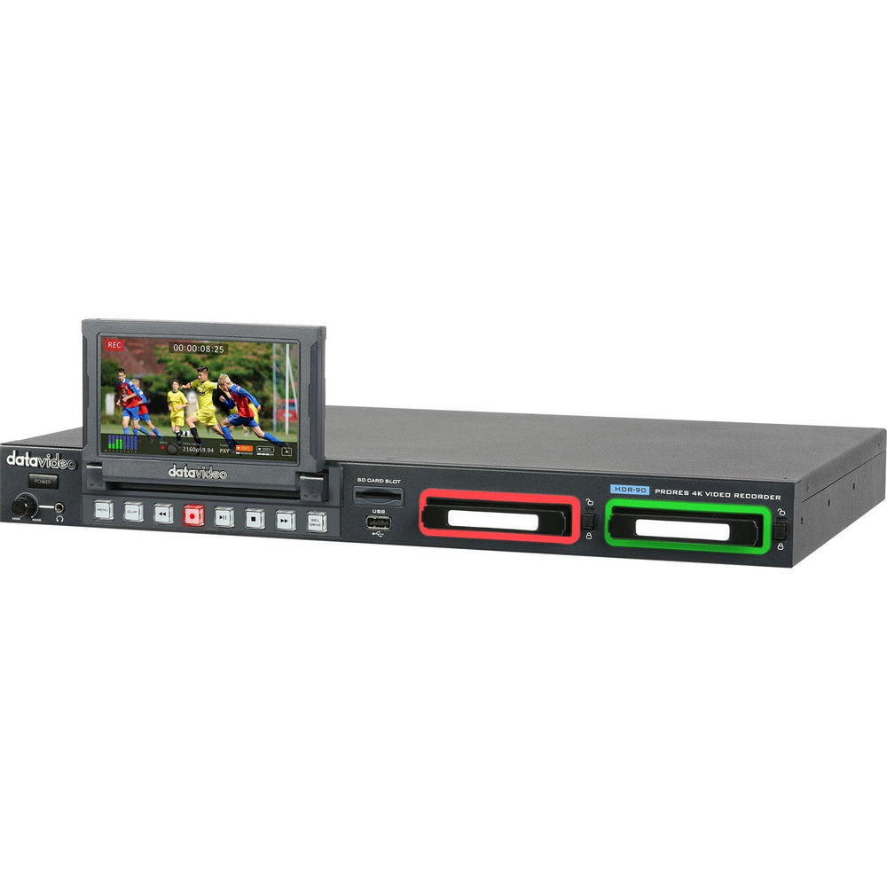 The Datavideo HDR-90 ProRes 4K Video Recorder - 1U Rackmountable is a professional 1U rackmountable ProRes 4K video recorder designed to meet the needs of OB vans, live events, and multi-camera productions. It captures exceptional video quality with 10-bit 4:2:2 ProRes recording, making it ideal for high-end editing workflows in Final Cut Pro X or other professional editing software.