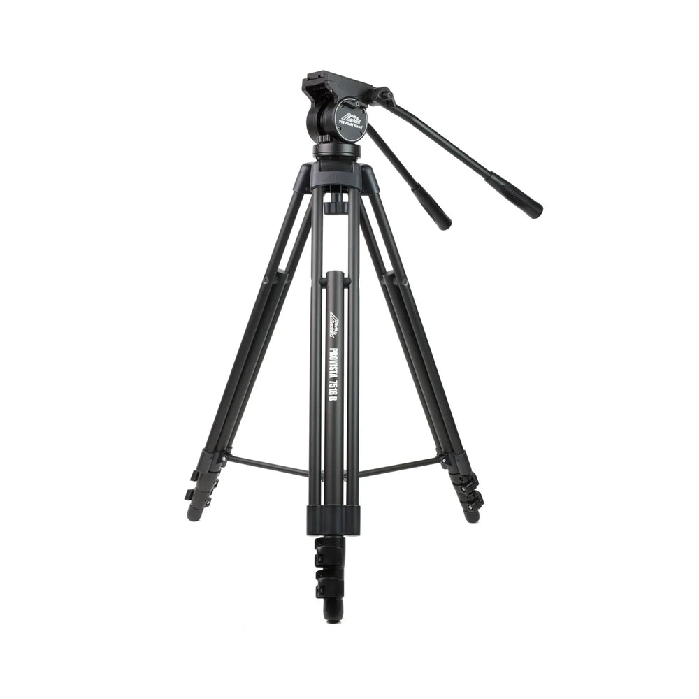 From the field to the studio, the David & Sanford Provista 7518B Tripod with V18 Fluid Head provides stable support for videographers working with larger camcorders weighing up to 18 lb. The aluminum alloy legs feature double-strut top leg sections for extra stability, and a 75mm claw ball leveler for the V18 Fluid Head. An included mid-level spreader adds additional leg rigidity, while large rubber leg tips provide a secure grip on a variety of surfaces. The system offers a height range of 28 to 64" and folds down to 29" for storage inside the included padded carrying case. Dual pan bar handles for the fluid head are provided.