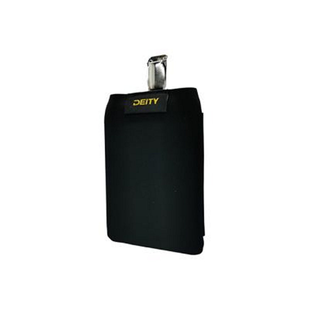 The DEITY THEOS DBTX Pouch is a low-profile, lightweight soft pouch designed to hold and conceal a DBTX bodypack transmitter. It provides a wearable option for on-talent concealment, wardrobe attachment, or belt mounting while keeping the transmitter secure and accessible.