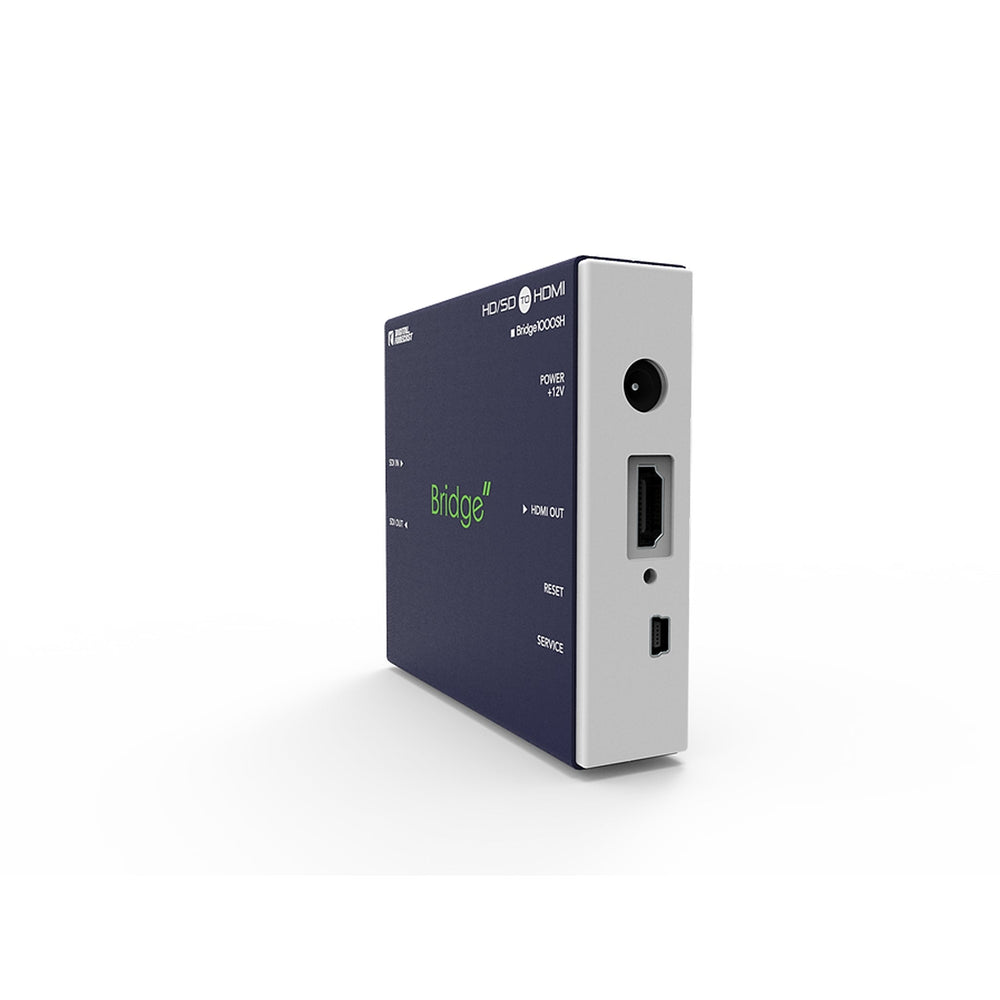 Bridge1000_SH is a device that will convert an HD SDI signal of SMPTE standards into the HDMI signal. It'supports up to 1080p60 format, It'supports 1 Re-clocking out.