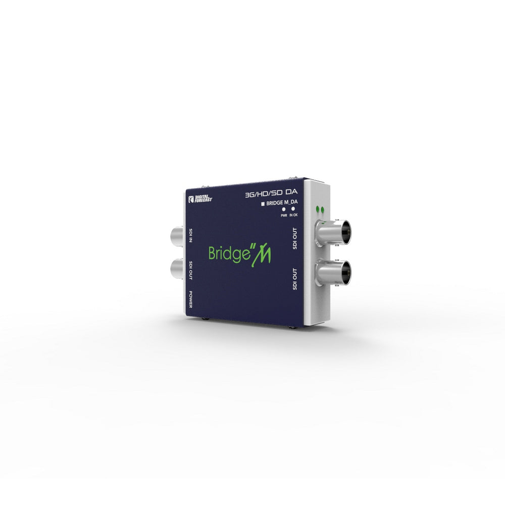 The M-DA is part of the Digital Forecast Bridge M Series (Micro Type Converters) and is a Serial Digital video distribution amplifier that allows you take a single SDI signal and send it out to up to three devices. SD, HD, and 3G-SDI standards are supported. The M-DA distributes SDI SMPTE standard signals supporting formats up to 1080p60. There is a built-in re-clocker and cable equalizer - ensuring accuracy up to 100m/328ft in HD.