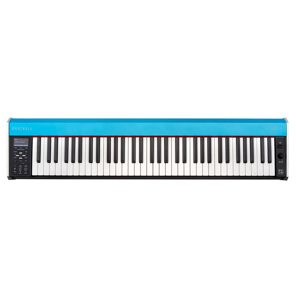 The slightly weighted keyboard of the VIVO S1, with 68 keys, offers the same initial “A” note as an 88-key keyboard, ensuring the same feeling as playing a real piano. The VIVO S1 includes many functions found in its larger siblings of the S series, such as “Seamless Transition,” preventing unwanted interruptions in sound or active effects during patch changes or when activating new sounds. The complete memory of the VIVO S1, with over 80 high-quality sounds (the list is available in the Download section), occupies 1.5 GB and offers the flexibility to be completely reconfigured using the free sound library available on the DEXIBELL website, as well as the online library of the “Sound Font” standard.