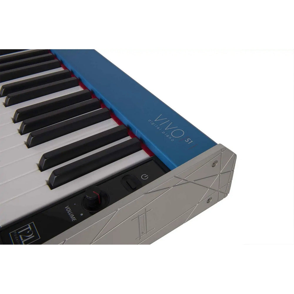 With a beautiful light blue aluminum case weighing only 8.5 kg, the VIVO S1 features the legendary acoustic and electric piano sounds available throughout the VIVO series. The VIVO S1 includes the exclusive “Virtual Damper” function, eliminating the need to carry a damper pedal while traveling, allowing musicians to play without any accessory.