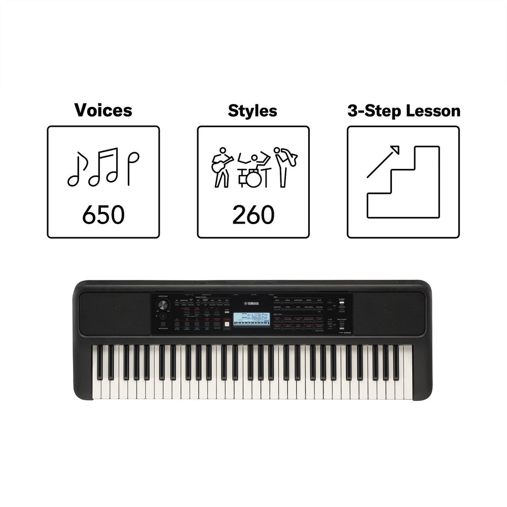 For those embarking on their first keyboard journey or seasoned performers seeking a reliable instrument, the Yamaha PSR-E383 61-Key Standard Portable Keyboard offers a versatile experience. It features an expressive touch-sensitive keyboard, user-friendly functions, and is perfect for beginners to dive into playing right away.