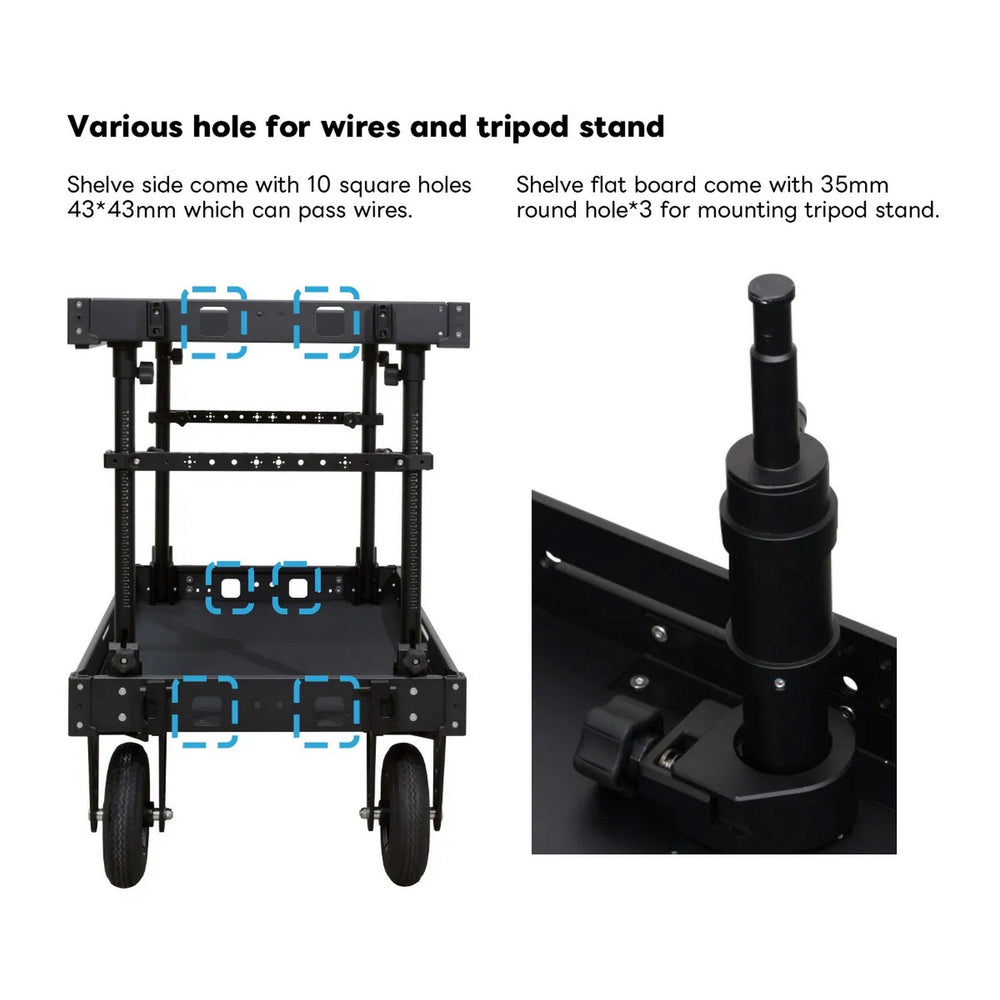 In addition to its functional design, the DigitalFoto LBC cart prioritizes user comfort and convenience. The ergonomic handle ensures smooth pushing or pulling, while the oversized wheels provide stability and ease of movement across different terrains. With this camera cart, you can focus on your creative vision, knowing that your equipment is securely in place.