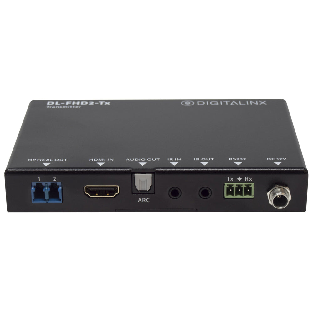 The DigitaLinx DL-FHD2 is a two fiber 18G HDMI extender that will allow you to run HDMI 2.0 signals up to 18Gbps up to a 1000'. In addition to extending high bandwidth HDMI signals, the DL-FHD2 will extend IR and RS232 control and is ARC compatible and supports static and dynamic HDR. The DL-FHD2 requires the use of a duplex LC multimode OM3 fiber optical cable to extend HDMI and control.