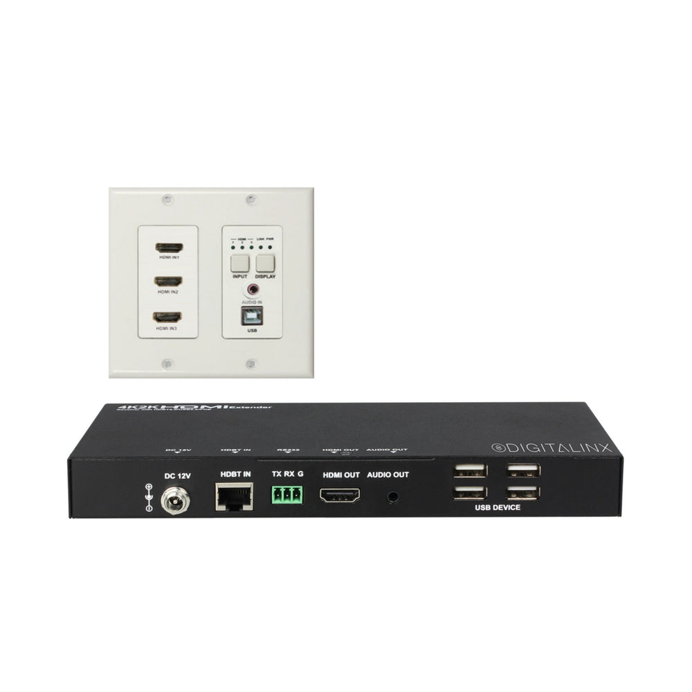 - Auto Switching 3 HDMI, 1 pass-through audio, 1 USB-B wall plate with matching receiver