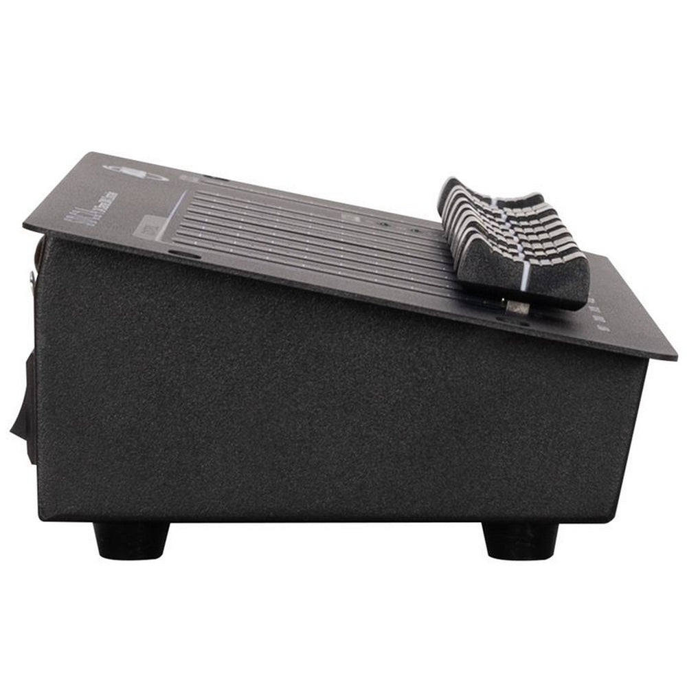 The ADJ SDC24 DMX Controller with Wired Digital Communication Network stands out as a fundamental 24-channel DMX Controller designed to function with either an external 12VDC power supply (provided) or a 9VDC battery (not included). Featuring both 5-pin and 3-pin DMX output sockets, DIP switches for configuring the initial DMX channel, a master dimmer fader, an on/off switch, and a Channel Page button complemented by Indicator LEDs, this compact controller proves ideal for product demonstrations or manual management of LED or traditional lighting fixtures.