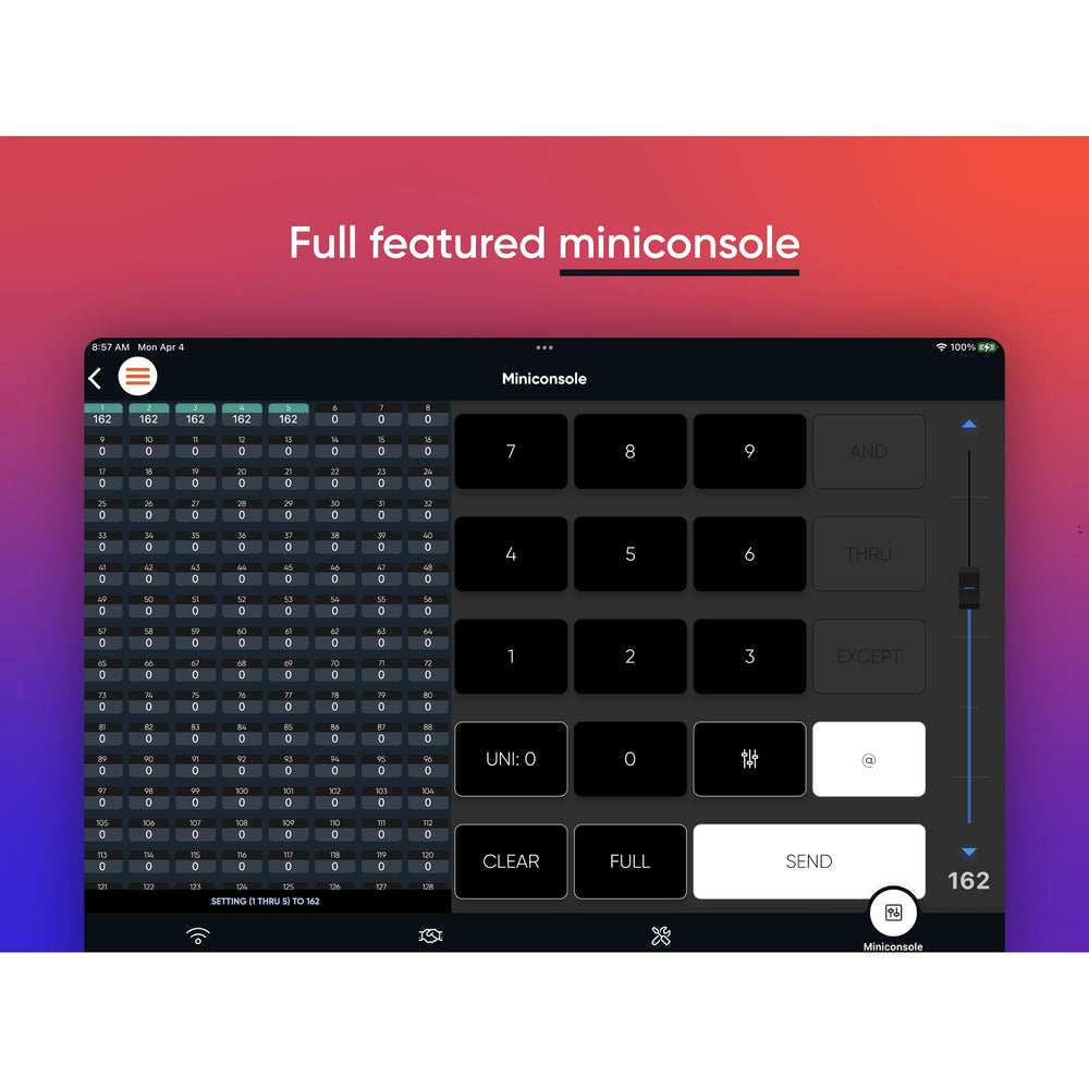 - Supports industry standard protocols: USITT DMX-512, sACN, Art-Net 4