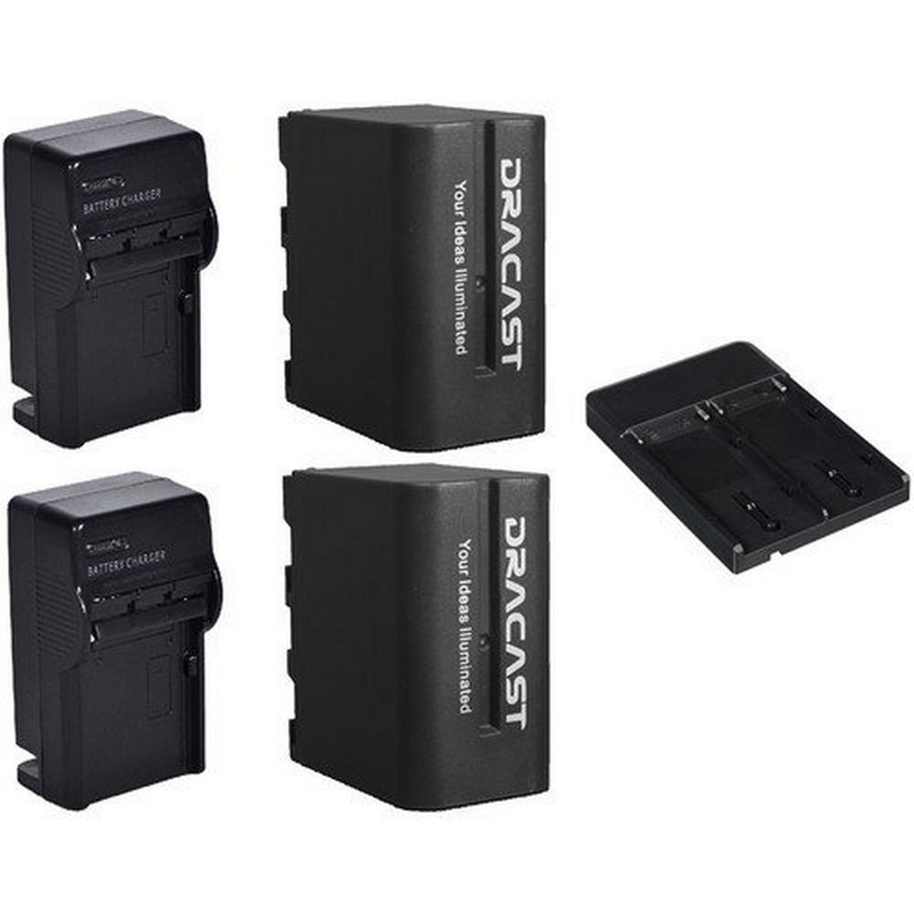 Dracast DRBK2NPFBADP 2 x NP-F 6600mAh Batteries with Chargers and V-Mount to NPF Converter Kit