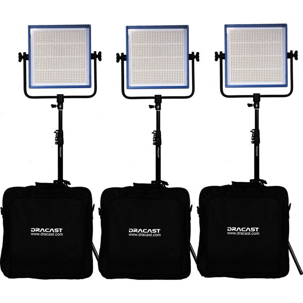 Dracast DRLK3X1000BK LED1000 Pro Series Bi-Color 3 Light Kit with V-Mount Battery Plates and Light Stands