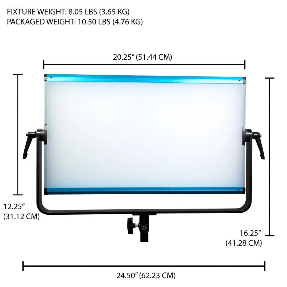 The X Series is the newest compact LED panel light from Dracast. The X Series is designed with portability in mind. The panel includes an installed mounting yoke with a 5/8” baby pin receiver for fast and easy mounting on compatible light stands or C clamps. The X Series features full spectrum RGB, plus adjustable white color temperature from 3200K to 5600K CCT. Also included are preset color gels and filters, as well as a collection of customizable effects and presets.