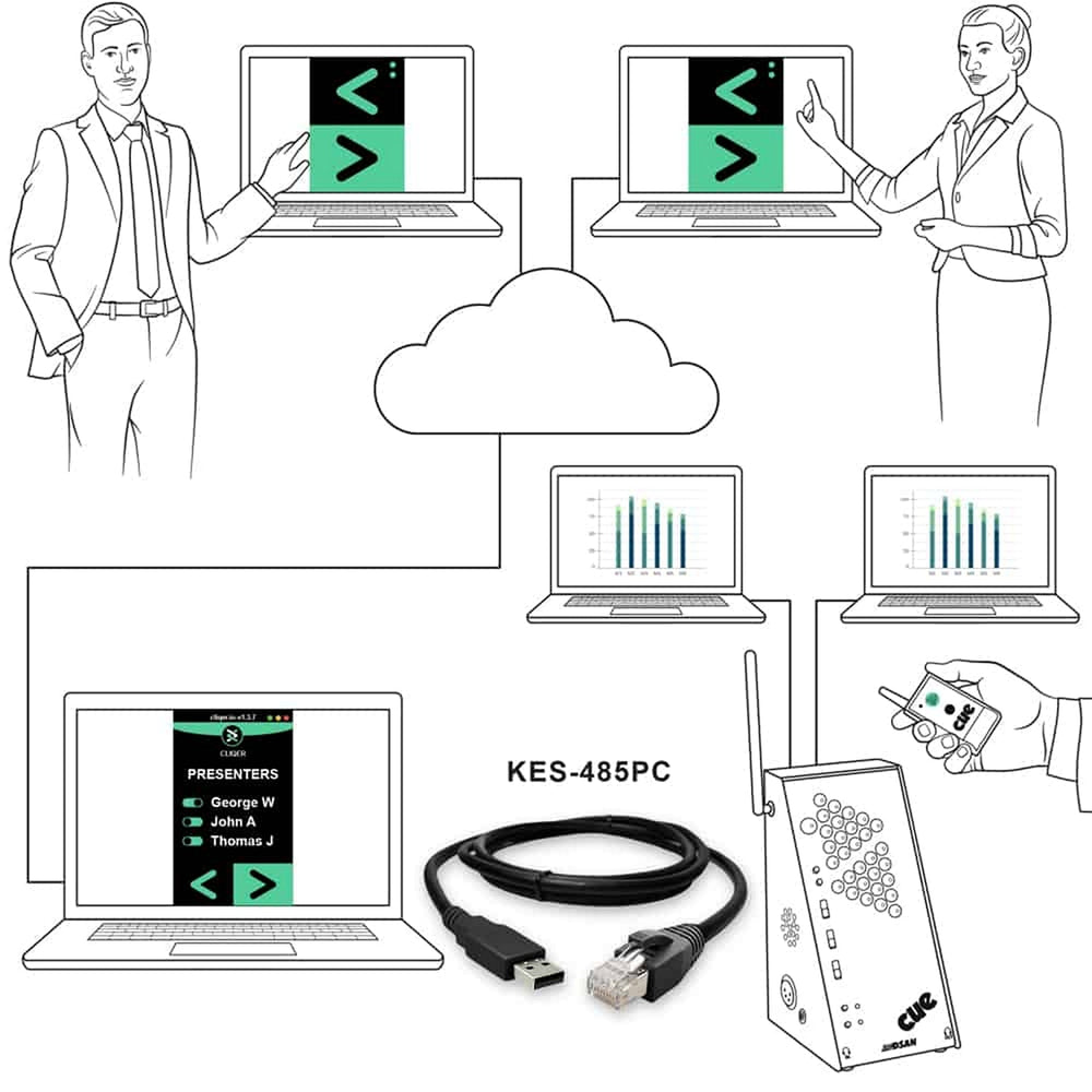 Cliqer.io offers a host of additional functionalities to simplify your presentation experience. Not only can it host multiple presenters, but it also allows you to push count-down timers and deliver live local presentation screenshots to the presenter’s interface. The KES-485-PC USB Serial Cable facilitates these remote commands, ensuring that the transition between your online platform and physical equipment is flawless. This integration means that multiple computers running your presentation applications can be directly controlled through the PerfectCue system, thereby enhancing the fluidity and professionalism of your presentation.