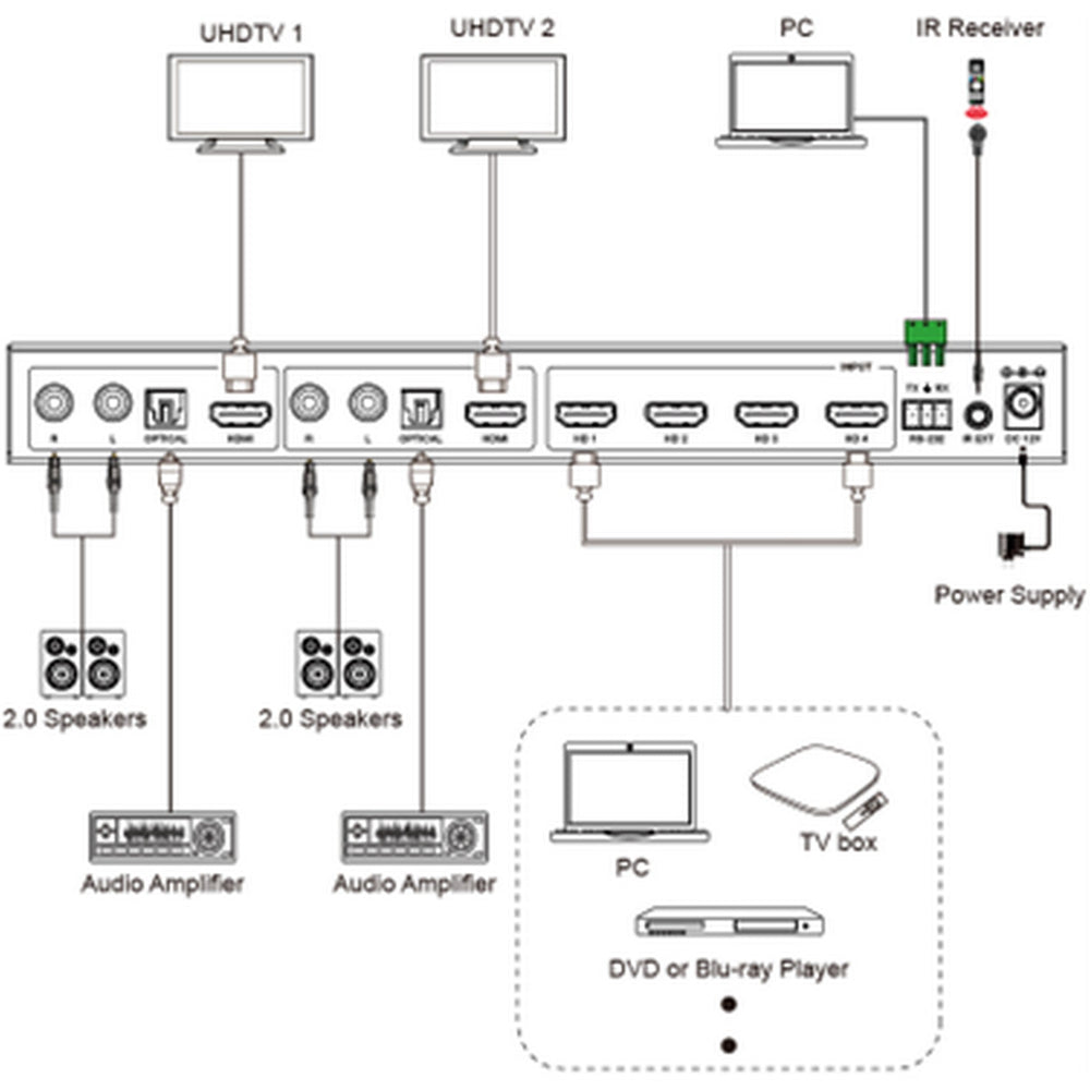 4 x HDMI IN [Type A, 19-pin female]
