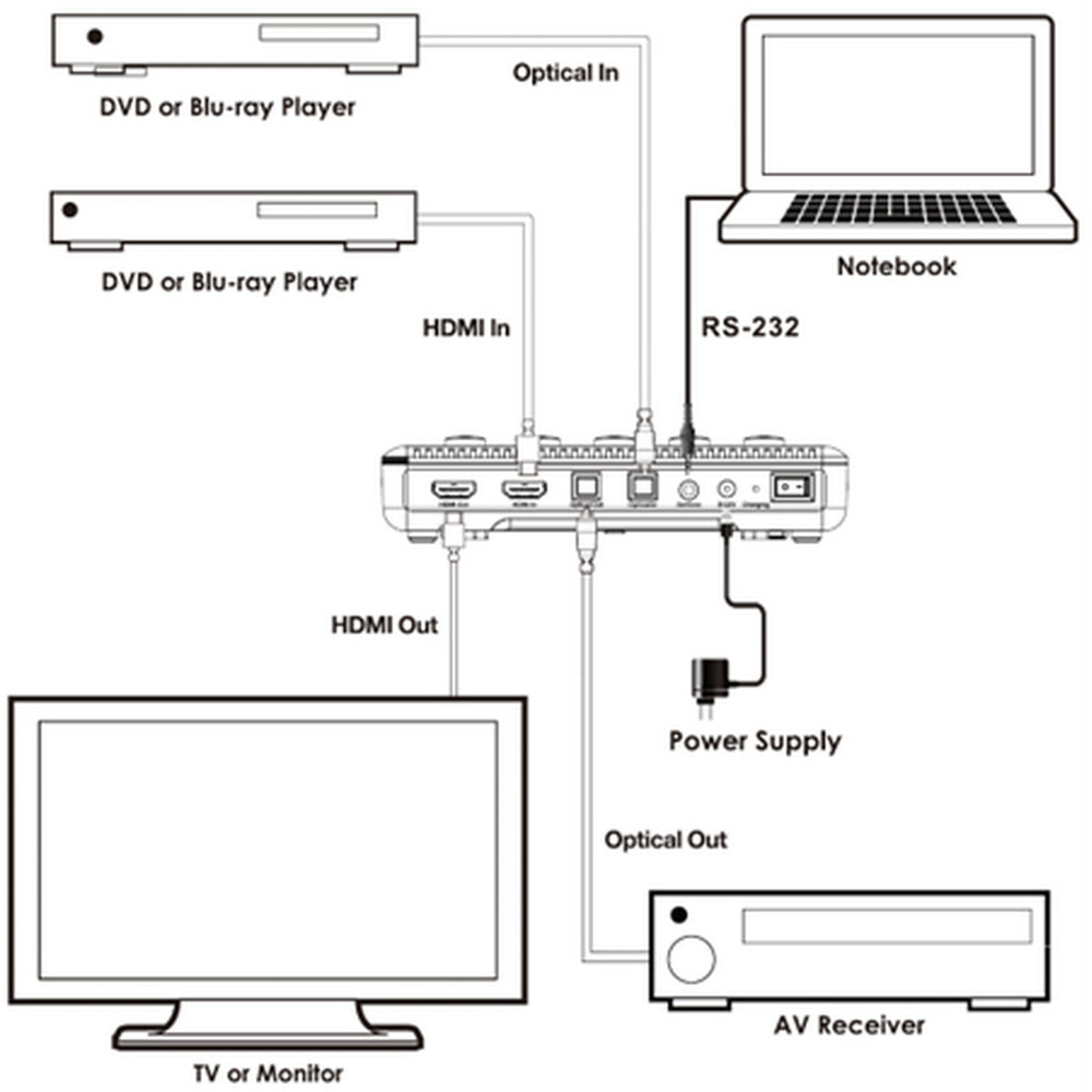 Input ports: 1× HDMI In [Type A, 19-pin Female], 1× Optical In [S/PDIF]