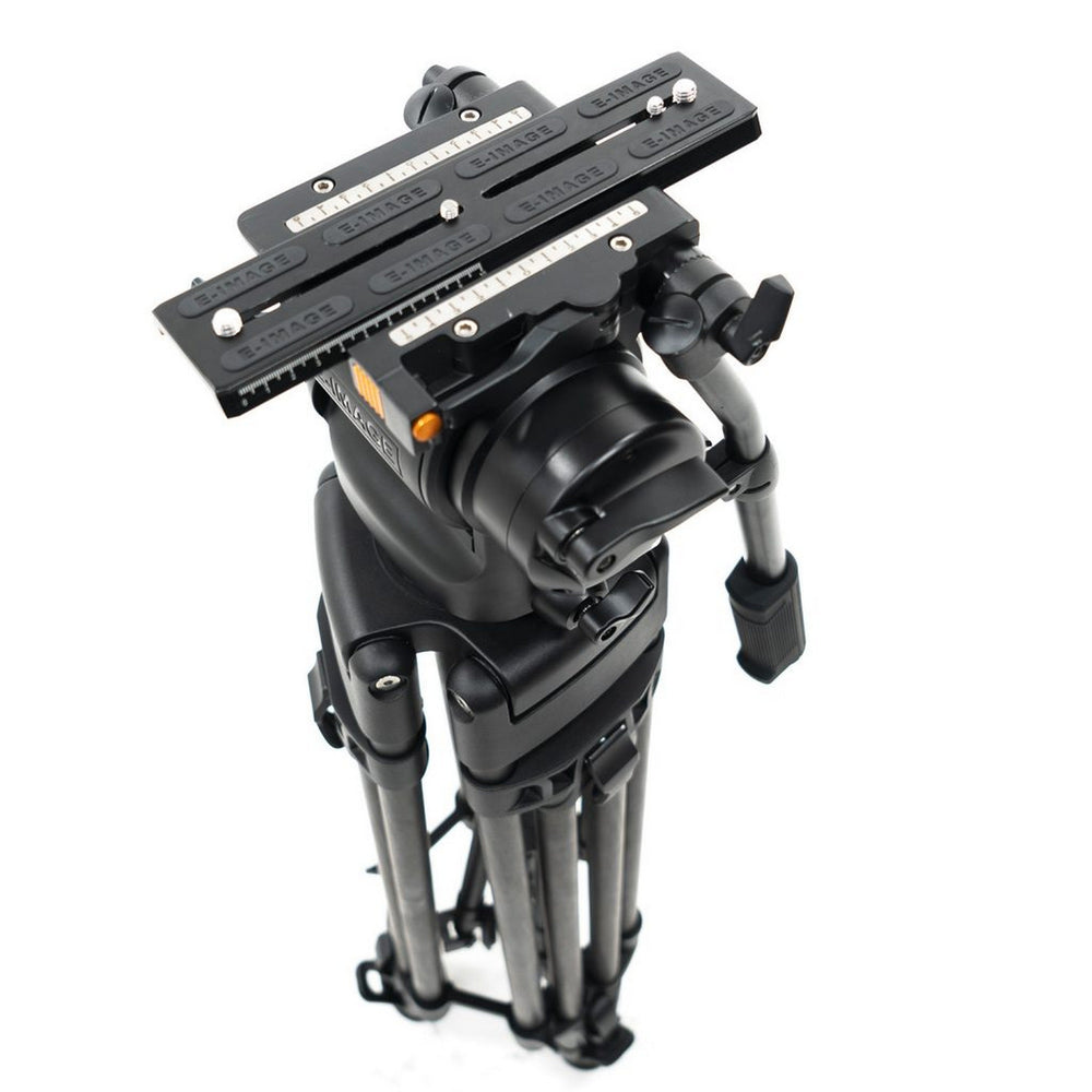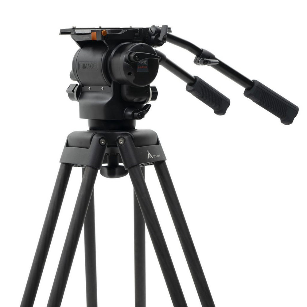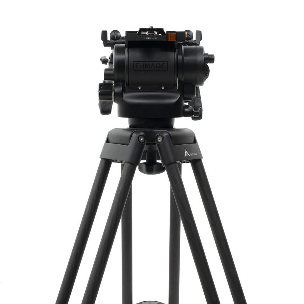 The E-Image MOTUS22 3-Stage Carbon Fiber Tripod Kit is designed with both broadcast professionals and filmmakers in mind, making it an ideal choice for anyone seeking robust payload support. The kit includes the MH22 fluid head, which features a continuous variable counterbalance that gives operators unparalleled adjustment capabilities on the fly for payloads up to an impressive 48.5 lbs. The fluid head’s 1-4 grades of independent fluid drag adjustments for both pan and tilt, and its separate locking knobs, allow the operator to easily adjust the head to suit their shooting style. The MH22’s double-locking plate ensures that the camera is securely mounted quickly and efficiently, snapping into place from the top of the head—a significant perk for larger rigs that struggle to move into place with a rear slider.The ECT100M 3-Stage Carbon Fiber Tripod, also included in the kit, supports payloads up to an astounding 220.5 lbs. Fashioned from lightweight carbon fiber, this tripod features a bowl size of 100mm and designated flip lock levers for each stage, allowing it to be raised to a maximum height of 59.6” or lowered to a minimum height of 21.9”. The ECT100M provides exceptional stability with its extendable mid-level spreader, and quick-release legs offer flexibility to adapt to any terrain. Removable rubber covers for the spiked feet protect delicate indoor surfaces while ensuring stability on rugged outdoor grounds.Key Features
