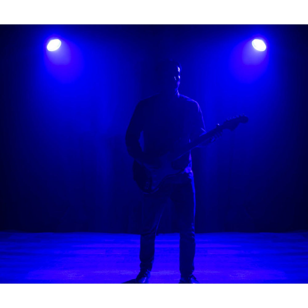 With a generous native beam angle of 80 degrees, the fixture ensures broad coverage for vibrant colored illumination. It comes equipped with a practical lens kit comprising 40-degree and 50-degree lens options, allowing for easy attachment to achieve a narrower beam angle as needed. For seamless integration into existing control systems, the unit features 5-pin DMX input and output connectors on the rear panel. Additionally, locking power input and output sockets enable linking up to three fixtures to a single power source. The package includes a versatile scissor yoke for use as a hanging bracket or floor stand, while optional barn doors are available for precise light direction. An Omega Bracket is provided for vertical mounting of the fixture as a pendant light.