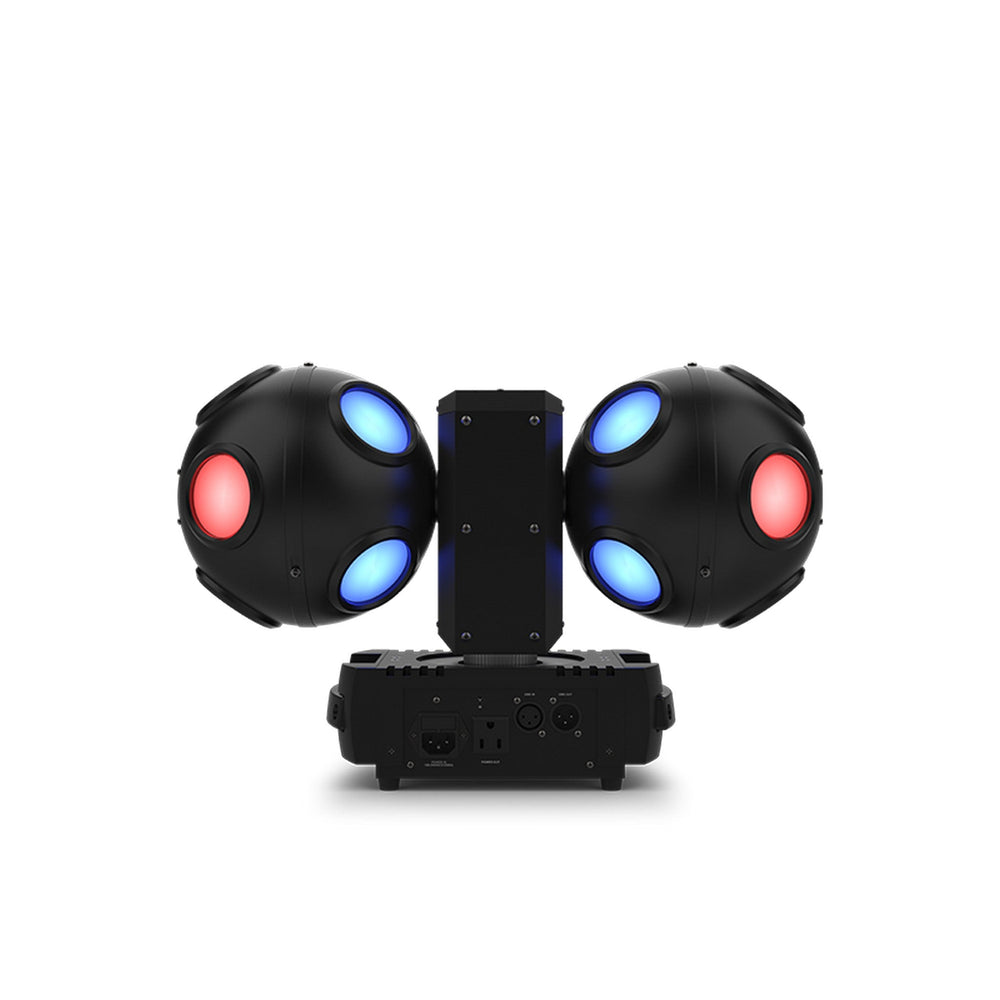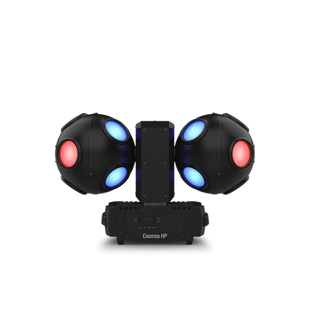 Blast into a whole new universe of dance floor energy with Cosmos HP, a high-powered LED effect light that generates breathtaking razor-sharp beams of RGBW light for astonishing aerial effects that cover the entire room and look amazing with or without haze. Independently controlled motors spin two LED-filled balls continuously in different directions, creating stunning swirling effects.