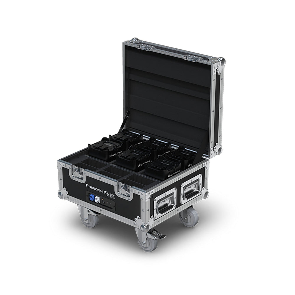 Designed with convenience in mind, the Freedom Flex H9 IP X6 features full-text OLED displays for easy navigation and adjustable run times to ensure the fixtures last as long as your events do. Swappable battery packs and a charging road case that simultaneously charges up to six batteries guarantee your lights are always ready for action.
