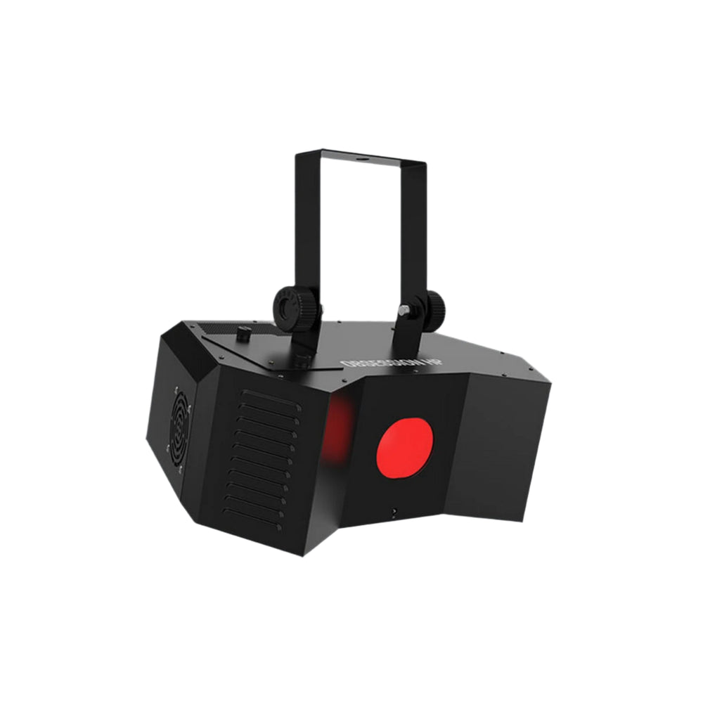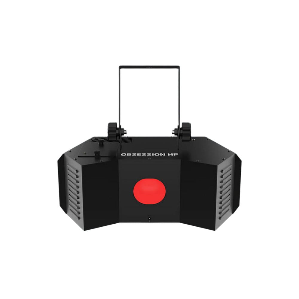 Create eye-popping, animated gobo light shows with Obsession HP, a compact LED effect light fitted with a 100W LED that projects multi-colored, rotating gobos. Obsession HP's design power and flexibility reach new heights because gobos are interchangeable, and the onboard mirror dish and separate color and gobo wheels easily generate complex lighting looks. Generate a synchronized show in Master/Slave mode with up to 2 units, and save time running cables and extension cords by power linking multiple units. Obsession HP is compatible with IRC-6 for flexible control over all features and fits best in the CHS-40 VIP Gear Bag.