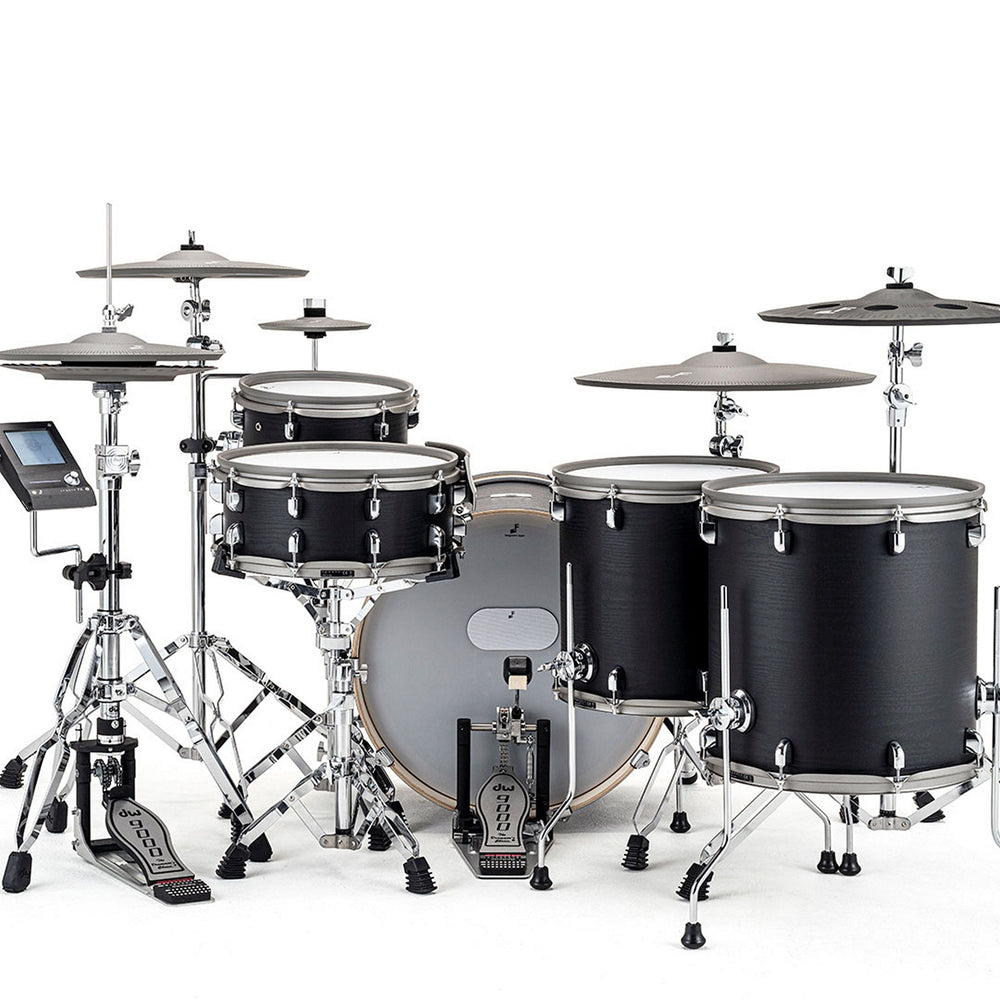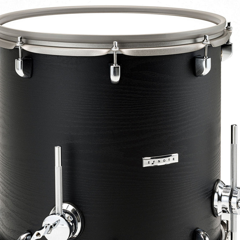 The EFNOTE 7X Acoustic Designed Electronic Drum Set is a unique and musically advanced addition to the current market. The 7X kit expands on the EFNOTE 7 and features the handsome black oak wrap. It's the perfect combination for drummers who love innovation and quality. This kit offers a full-sized look and exceptional features such as the ONLY patented STAX™ cymbal setup and the ONLY 20” ride on the market. With the new FX cymbal and added 8” Splash, this setup allows for FOUR zones in one rig, creating a never-before-seen sympathetic resonance on the edrum market. The 13” floor tom in addition to the existing 15”, and 11” tom in snare stand (Basket) adds style and fun to this unique drum kit.