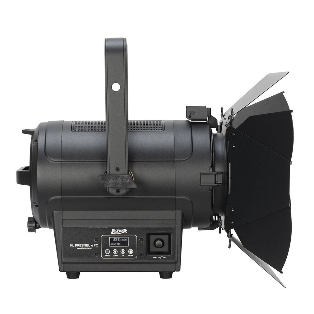 The KL Fresnel 6 FC can be operated through industry-standard DMX protocols and has full RDM support. In addition, it offers manual access using the included encoders and display, providing instant control of Intensity, Color temperature, green shift, and other important settings. The display and encoders are conveniently positioned at the bottom side of the fixture to ensure unobstructed access while mounted on a stand.